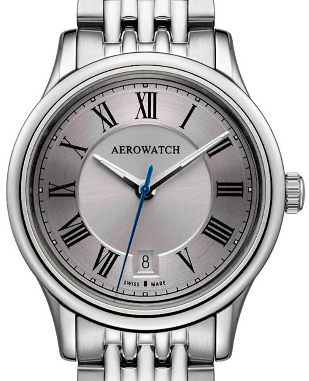 Мужские наручные часы Aerowatch 24962 AA01 M из коллекции Les Grandes Classiques — это классический пример швейцарского часового мастерства. Модель выполнена в круглом корпусе диаметром 40 мм из нержавеющей стали, что делает их универсальным аксессуаром для повседневного и торжественного образа. Часы оснащены надежным кварцевым механизмом. Окошко даты на 6 часах.Циферблат оформлен в классическом стиле, а его защиту обеспечивает прочное сапфировое стеклоСапфировое стеклоПрочный и надёжный материал из кристалла сапфира синтетического происхождения, характеризующийся особой твёрдостью и устойчивостью к царапинам и повреждениям., устойчивое к царапинам и повреждениям. Часы обладают водостойкостью 5 АТМ (WR50) , что позволяет использовать их в повседневных условиях, включая легкий контакт с водой. Браслет выполнен из высококачественной нержавеющей стали, обеспечивая комфорт и элегантность при ношении. Стрелки с люминесцентным покрытиемЛюминесцентное покрытиеПозволяет считывать показания времени в темноте. Производители наносят на стрелки, часовые индексы, безель или поверхность циферблата светонакопительный состав, дающий холодное свечение..
