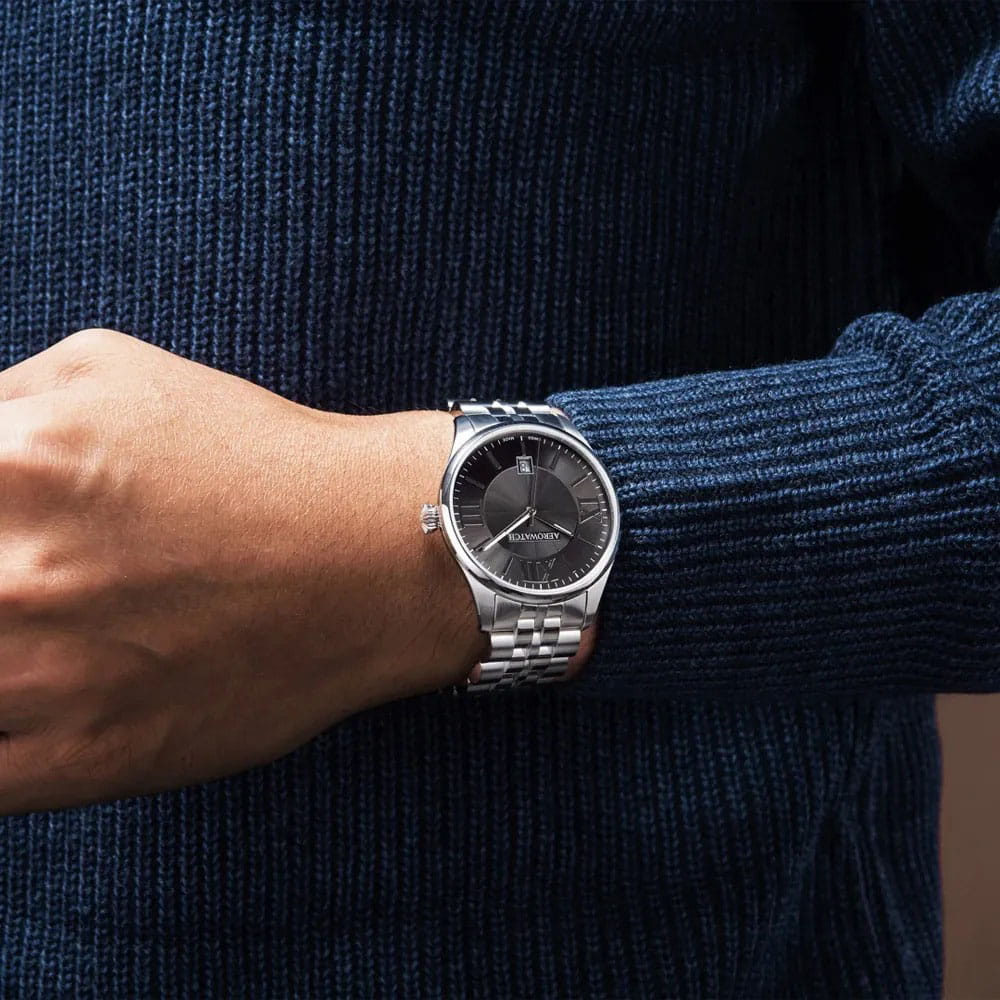 Мужские швейцарские часыAerowatch Les Grandes Classiques 42997 AA02 M, кварцевый механизм с высокой точностью. Сапфировое стеклоСапфировое стеклоПрочный и надёжный материал из кристалла сапфира синтетического происхождения, характеризующийся особой твёрдостью и устойчивостью к царапинам и повреждениям. устойчивое к появлению царапин, обладающее высокой прозрачностью. Корпус и браслет изготовлены из нержавеющей стали. На циферблате расположены стрелки с люминесцентным покрытиемЛюминесцентное покрытиеПозволяет считывать показания времени в темноте. Производители наносят на стрелки, часовые индексы, безель или поверхность циферблата светонакопительный состав, дающий холодное свечение., окошко даты в положении 6 часов. Класс водозащиты: 50 метров, позволит защитить корпус от случайных брызг или капель дождя. Стальной браслет на застёжке «бабочка» с кнопкамиЗастёжка "бабочка"Такой вид застёжки дополняется предохранителями, помогающими избежать случайного раскрытия браслета. Обладают изящным исполнением. .