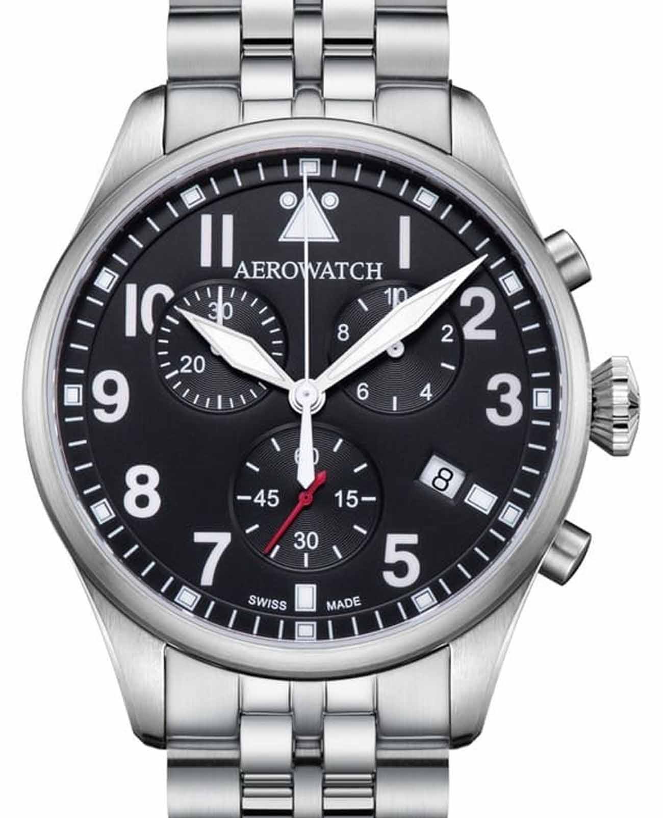 Мужские наручные часы-хронографХронографФункция позволяет измерять отрезки времени с особой точностью: часы, минуты, секунды. Верным признаком хронографа является наличие на циферблате 3 дополнительных окошек-счётчиков. Aerowatch 79990 AA03 M — это классический пример швейцарского часового мастерства. Модель выполнена в круглом корпусе диаметром 42 мм из нержавеющей стали, что делает их универсальным аксессуаром для повседневного и торжественного образа.