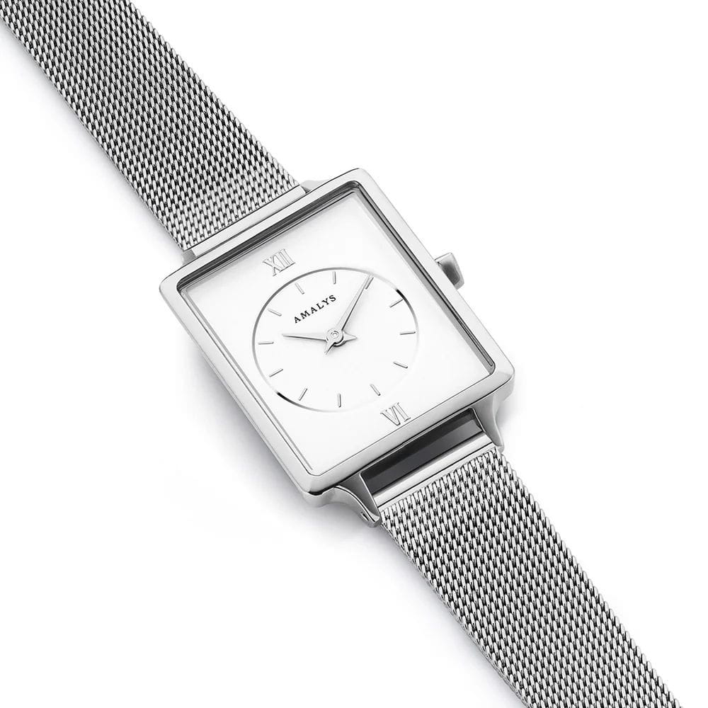 Amalys AMW-046 — женская модель с утончённой минималистичной эстетикой, где корпус размером 23 мм подчёркивает современный характер и чистоту линий. Механизм — точный кварцевый, обеспечивающий стабильный ход и надёжность в повседневном использовании. Поверхность циферблата оформлена в лаконичном стиле с тонкими метками и стрелками, создающими гармонию и визуальную лёгкость. Защитную функцию выполняет минеральное стеклоМинеральное стеклоМинеральное стекло представляет собой искусственно выращенный минерал кварца. Такое стекло отличается особой устойчивостью к повреждениям и царапинам. Уступает по некоторым качествам сапфировому стеклу., устойчивое к механическим воздействиям и сохраняющее читаемость при ежедневной носке. Браслет выполнен в виде «миланской сетки» шириной 14 мм, оснащён раскладным замкомРаскладной замокДанный вариант застежки используется только на часах с металлическим браслетом. Отличительная особенность такого крепления в том, что длина браслета становится универсальной и вы можете самостоятельно отрегулировать нужный вам размер – застежка просто двигается по браслету часов., его гибкая структура обеспечивает комфортное прилегание к запястью и визуальную утончённость. Единство корпуса и браслета создаёт целостный образ, а изысканная простота дизайна делает модель универсальной — она одинаково уместна и в деловой обстановке, и в повседневных сочетаниях.