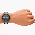 Armani Exchange Hampton AX2455 — это стильные и надежные часы, которые привнесут элегантность в ваш повседневный образ. Эти кварцевые часы выделяются своим круглым корпусом и безелемБезельВнешний ободок, закрепляющий стекло. В спортивных часах так называется поворотное кольцо с делениями на циферблате, выполняет роль таймера – замеряет отрезки времени на шкале. Неподвижный безель – элемент декора. Однонаправленно вращающийся безель на дайверских часах позволяет фиксировать моменты погружения и выныривания на поверхность., выполненными из высококачественной нержавеющей стали с серым IP-покрытиемIP-покрытиеМетод ионного напыления. Демонстрирует повышенную устойчивость к истиранию, окислению и химическим веществам. Под воздействием высокого давления и температуры около 1500°C молекулы металла надёжно соединяются с частицами корпуса часов., что обеспечивает долговечность и современный внешний вид. Серый текстурированный циферблат украшен метками в виде штрихов и минутной шкалой, что делает его не только стильным, но и функциональным, а окошко даты удобно расположено в положении 3 часа, что позволяет легко следить за текущей датой. Минеральное стеклоМинеральное стеклоМинеральное стекло представляет собой искусственно выращенный минерал кварца. Такое стекло отличается особой устойчивостью к повреждениям и царапинам. Уступает по некоторым качествам сапфировому стеклу. защищает циферблат от царапин и повреждений, обеспечивая долговечность. Часы оснащены заводной головкой с защитой, что добавляет надежности в повседневном использовании. Стальной браслет с серым IP-покрытиемIP-покрытиеМетод ионного напыления. Демонстрирует повышенную устойчивость к истиранию, окислению и химическим веществам. Под воздействием высокого давления и температуры около 1500°C молекулы металла надёжно соединяются с частицами корпуса часов. и раскладной застёжкойРаскладная застёжкаТакой тип застёжки используется только на браслетах из металла. Она никогда не раскрывается полностью, происходит разделение на 2 и более частей. Раскладывающая застёжка снизит вероятность потери часов к минимуму. обеспечивает комфорт и надежную фиксацию на запястье. С водозащитой 50WR, эти часы подходят для повседневного использования, обеспечивая защиту от случайных брызг и дождя.