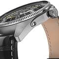 Циферблат отличается детальной функциональностью: в центре — крупные арабские цифры и стрелки, покрытые люминесцентным покрытиемЛюминесцентное покрытиеПозволяет считывать показания времени в темноте. Производители наносят на стрелки, часовые индексы, безель или поверхность циферблата светонакопительный состав, дающий холодное свечение., обеспечивающими мгновенное считывание времени даже в темноте. На «3 часах» — окошко даты, а индикатор второго часового пояса (GMT) удобно расположен на «9 часах». С внешней стороны — вращающийся безельБезельВнешний ободок, закрепляющий стекло. В спортивных часах так называется поворотное кольцо с делениями на циферблате, выполняет роль таймера – замеряет отрезки времени на шкале. Неподвижный безель – элемент декора. Однонаправленно вращающийся безель на дайверских часах позволяет фиксировать моменты погружения и выныривания на поверхность. с PVD-покрытиемPVDУльтратонкое покрытие наносится в технике вакуумного напыления, сочетает в себе нитрид титана особой прочности со слоем золота или оксида хрома. Несёт в себе декоративную или защитную функцию. с насечкой и градусной шкалой для секунд — идеален для расчёта времени пути или времени прибытия  .