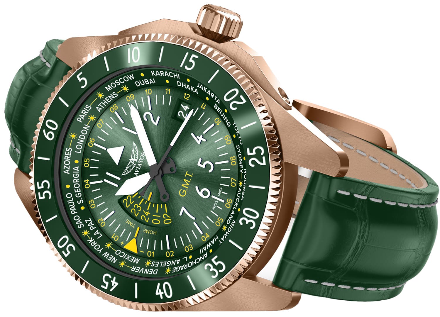 Airacobra GMT — инструментальное сочетание часовой точности, удобной функциональности GMT и авиационной эстетики, предназначенное для тех, кто ценит практичность и стиль в равной мере.