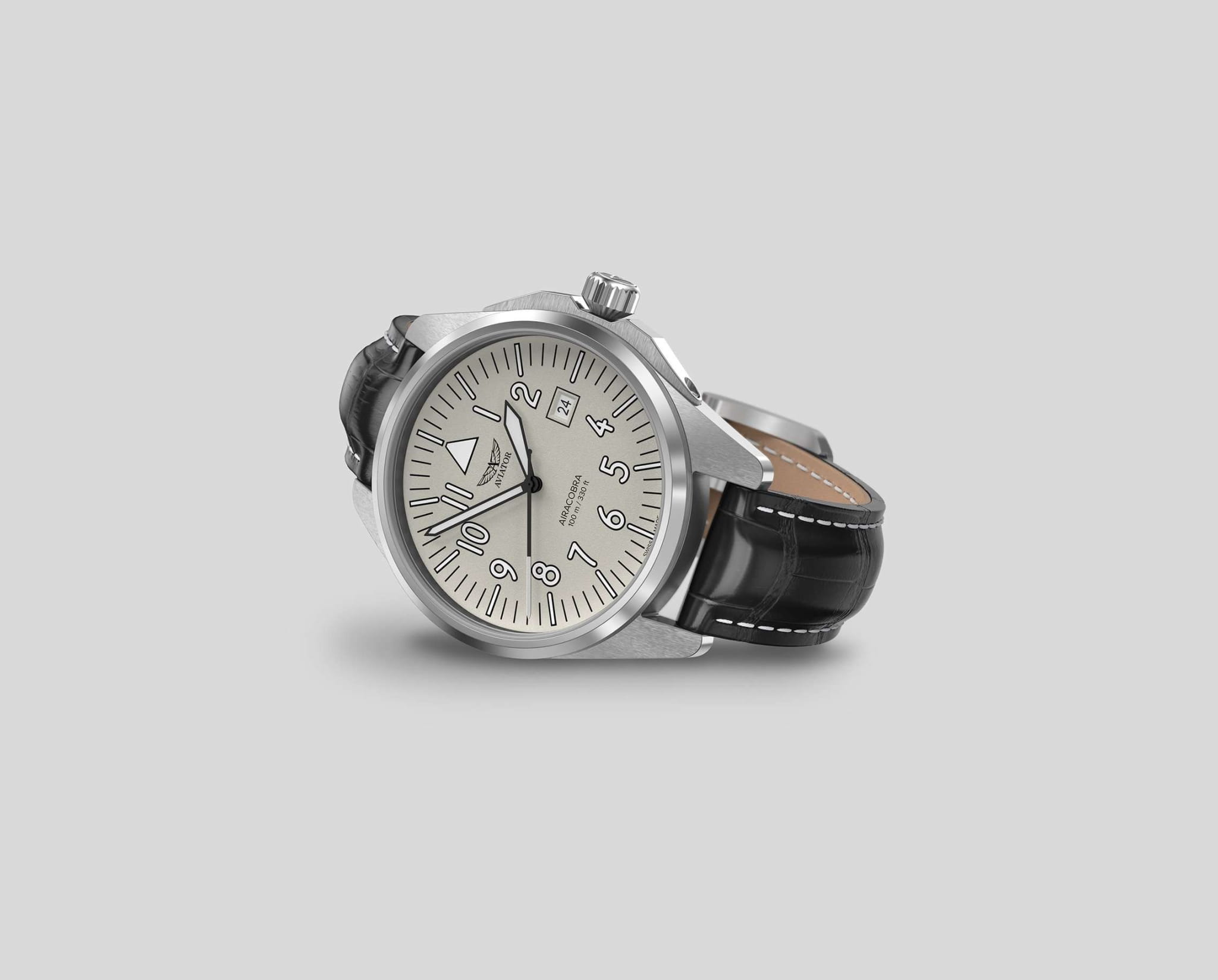 Aviator V.1.38.0.320.4 “Airacobra 43 Type A” — надёжные швейцарские пилотские часы с насыщенным функционалом и строгим авиационным дизайном. Корпус диаметром 42,8 мм выполнен из нержавеющей стали.