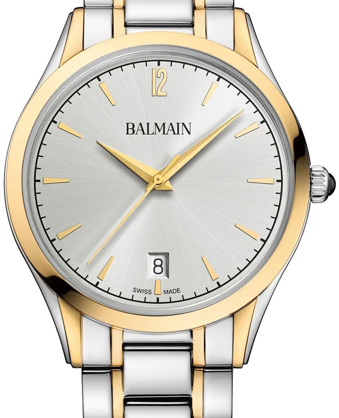 Женские часы Balmain Classic R Gent B4102.39.24 кварцевый механизм с высокой точностью. Сапфировое стеклоСапфировое стеклоПрочный и надёжный материал из кристалла сапфира синтетического происхождения, характеризующийся особой твёрдостью и устойчивостью к царапинам и повреждениям. устойчивое к появлению царапин, обладающее высокой прозрачностью. Корпус изготовлен из нержавеющей стали. Класс водозащиты: 50 метров, позволит защитить корпус от случайных брызг или капель дождя. Стальной браслет с PVD-покрытиемPVDУльтратонкое покрытие наносится в технике вакуумного напыления, сочетает в себе нитрид титана особой прочности со слоем золота или оксида хрома. Несёт в себе декоративную или защитную функцию. на застёжке «бабочка» с кнопкамиЗастёжка "бабочка"Такой вид застёжки дополняется предохранителями, помогающими избежать случайного раскрытия браслета. Обладают изящным исполнением. . БезельБезельВнешний ободок, закрепляющий стекло. В спортивных часах так называется поворотное кольцо с делениями на циферблате, выполняет роль таймера – замеряет отрезки времени на шкале. Неподвижный безель – элемент декора. Однонаправленно вращающийся безель на дайверских часах позволяет фиксировать моменты погружения и выныривания на поверхность. с PVD-покрытиемPVDУльтратонкое покрытие наносится в технике вакуумного напыления, сочетает в себе нитрид титана особой прочности со слоем золота или оксида хрома. Несёт в себе декоративную или защитную функцию.. Окошко даты находится в положении 6 часов.