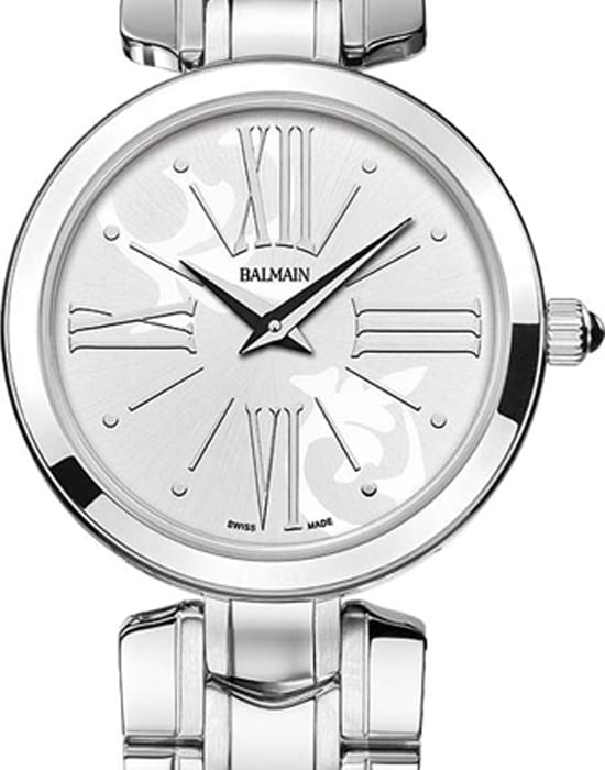 Женские часы Balmain Madrigal Lady III B4271.33.12 кварцевый механизм с высокой точностью. Сапфировое стеклоСапфировое стеклоПрочный и надёжный материал из кристалла сапфира синтетического происхождения, характеризующийся особой твёрдостью и устойчивостью к царапинам и повреждениям. устойчивое к появлению царапин, обладающее высокой прозрачностью. Корпус изготовлен из нержавеющей стали. Класс водозащиты: 50 метров, позволит защитить корпус от случайных брызг или капель дождя. Стальной браслет на застёжке «бабочка» с кнопкамиЗастёжка "бабочка"Такой вид застёжки дополняется предохранителями, помогающими избежать случайного раскрытия браслета. Обладают изящным исполнением. .