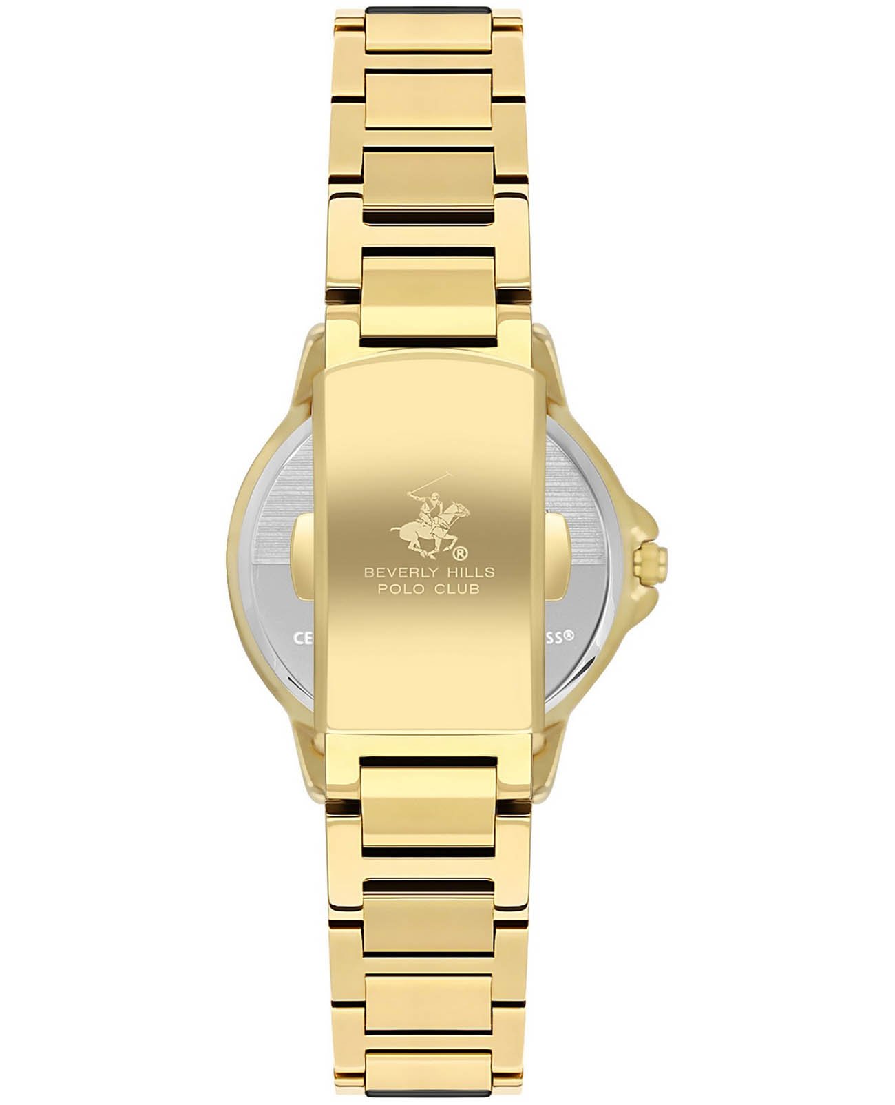 Женские наручные часы Beverly Hills Polo Club Quartz BP3602C.150 с надёжным кварцевым механизмом. Минеральное стеклоМинеральное стеклоМинеральное стекло представляет собой искусственно выращенный минерал кварца. Такое стекло отличается особой устойчивостью к повреждениям и царапинам. Уступает по некоторым качествам сапфировому стеклу. устойчивое к мелким механическим повреждениям. Корпус часов изготовлен из нержавеющей стали с IP-покрытиемIP-покрытиеМетод ионного напыления. Демонстрирует повышенную устойчивость к истиранию, окислению и химическим веществам. Под воздействием высокого давления и температуры около 1500°C молекулы металла надёжно соединяются с частицами корпуса часов.. БезельБезельВнешний ободок, закрепляющий стекло. В спортивных часах так называется поворотное кольцо с делениями на циферблате, выполняет роль таймера – замеряет отрезки времени на шкале. Неподвижный безель – элемент декора. Однонаправленно вращающийся безель на дайверских часах позволяет фиксировать моменты погружения и выныривания на поверхность. с IP-покрытиемIP-покрытиеМетод ионного напыления. Демонстрирует повышенную устойчивость к истиранию, окислению и химическим веществам. Под воздействием высокого давления и температуры около 1500°C молекулы металла надёжно соединяются с частицами корпуса часов.. Класс водозащиты: 50 метров, позволит защитить корпус от случайных брызг или капель дождя. Стальной браслет с IP-покрытиемIP-покрытиеМетод ионного напыления. Демонстрирует повышенную устойчивость к истиранию, окислению и химическим веществам. Под воздействием высокого давления и температуры около 1500°C молекулы металла надёжно соединяются с частицами корпуса часов. и керамическими вставками на раскладной застёжкеРаскладная застёжкаТакой тип застёжки используется только на браслетах из металла. Она никогда не раскрывается полностью, происходит разделение на 2 и более частей. Раскладывающая застёжка снизит вероятность потери часов к минимуму..