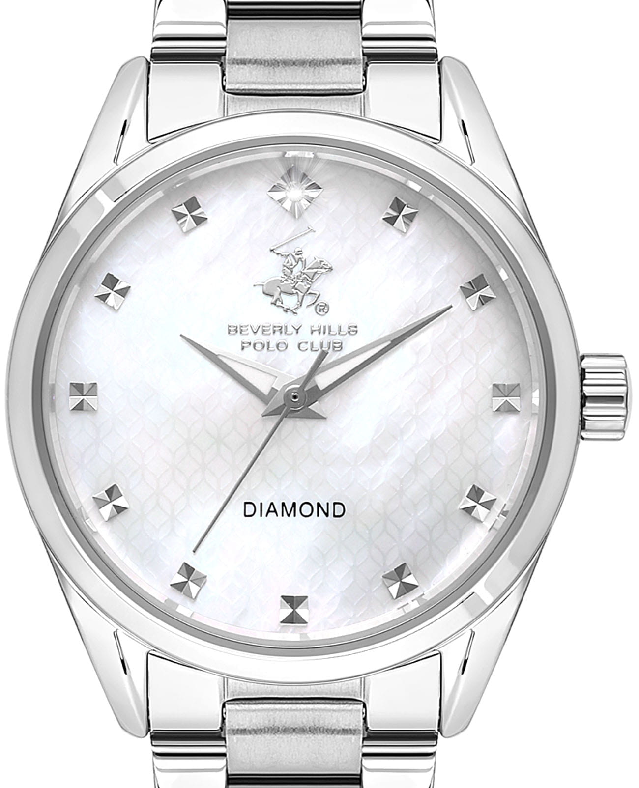 Американские женские часы Beverly Hills Polo Club BP3601C.320 - это стильный женский аксессуар, который сочетает элегантный дизайн и практичность. Корпус выполнен из суперметалла серебристого цвета, диаметром 32 мм, что обеспечивает долговечность и утончённый внешний вид. Надежное минеральное стеклоМинеральное стеклоМинеральное стекло представляет собой искусственно выращенный минерал кварца. Такое стекло отличается особой устойчивостью к повреждениям и царапинам. Уступает по некоторым качествам сапфировому стеклу. с сапфировым покрытием защищает циферблат от царапин и обеспечивает долговечность. Метки в виде точек, на 12 часов инкрустирован синтетический бриллиант. Модель оснащена кварцевым механизмом, обеспечивающим высокую точность хода. Стрелки с люминесцентным покрытиемЛюминесцентное покрытиеПозволяет считывать показания времени в темноте. Производители наносят на стрелки, часовые индексы, безель или поверхность циферблата светонакопительный состав, дающий холодное свечение.. Стальной браслет на раскладной застёжкеРаскладная застёжкаТакой тип застёжки используется только на браслетах из металла. Она никогда не раскрывается полностью, происходит разделение на 2 и более частей. Раскладывающая застёжка снизит вероятность потери часов к минимуму. обеспечивает комфортное ношение. Водозащита 30 метров позволит защитить корпус от случайных брызг или капель дождя. Эта модель – отличный выбор для тех, кто ищет сочетание стиля, качества и функциональности. Часы станут не только полезным аксессуаром, но и выразительным элементом вашего имиджа.
