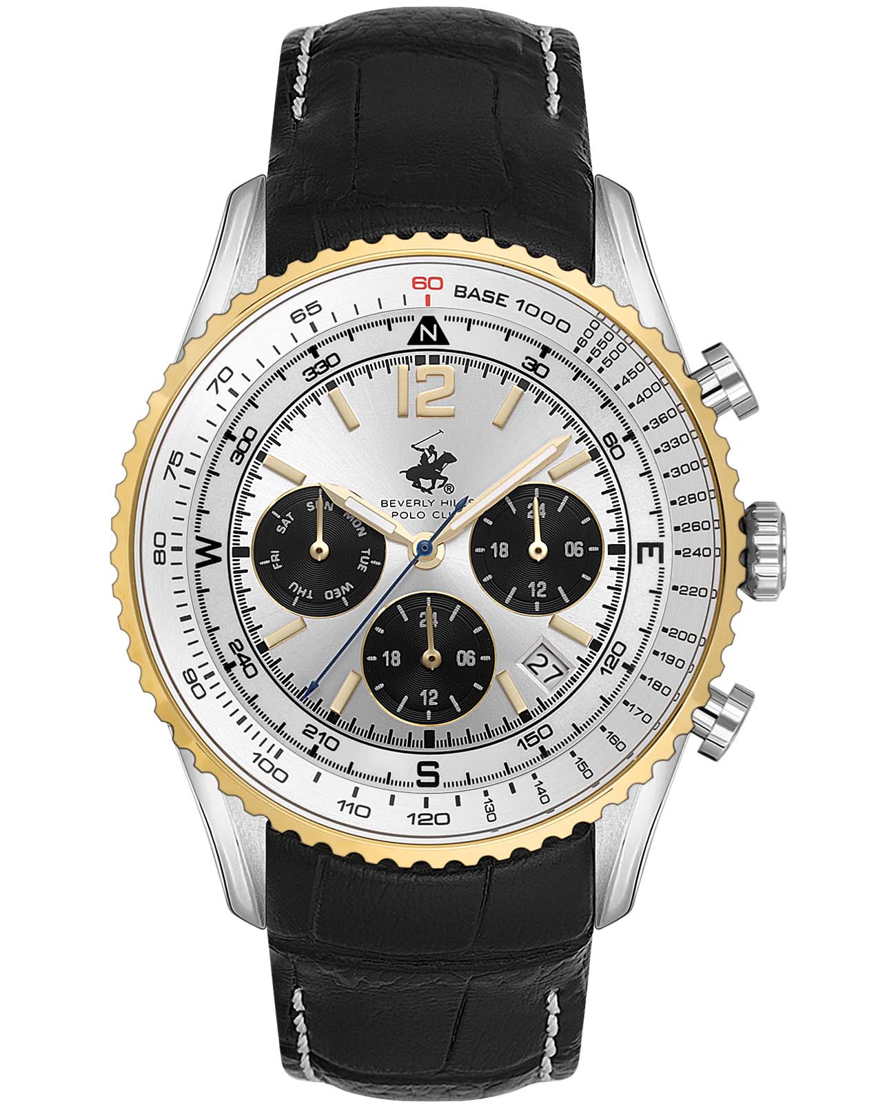На циферблате отображается не только текущее время, но и такие полезные функции, как дата, день недели, 24-часовой формат, возможность настройки второго временного пояса и даже тахиметрическая шкалаТахиметрРазмеченная шкала, располагается на ободке или безеле часов. Тахиметр позволяет рассчитать скорость на определённом участке пути, расстояние измеряется в километрах или милях. для измерения скорости. Эта модель — истинное воплощение философии Beverly Hills Polo Club: сочетание высоких стандартов качества и неподражаемого стиля, создающее аксессуар, который станет вашим верным компаньоном в повседневной жизни. БезельБезельВнешний ободок, закрепляющий стекло. В спортивных часах так называется поворотное кольцо с делениями на циферблате, выполняет роль таймера – замеряет отрезки времени на шкале. Неподвижный безель – элемент декора. Однонаправленно вращающийся безель на дайверских часах позволяет фиксировать моменты погружения и выныривания на поверхность. с IP-покрытиемIP-покрытиеМетод ионного напыления. Демонстрирует повышенную устойчивость к истиранию, окислению и химическим веществам. Под воздействием высокого давления и температуры около 1500°C молекулы металла надёжно соединяются с частицами корпуса часов..