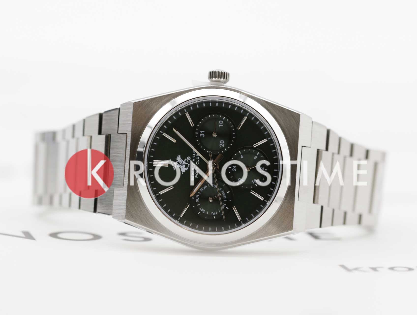 Beverly Hills Polo Club BP3754X.370 – элегантные женские часы, сочетающие стильный дизайн и высокую функциональность. Корпус диаметром 33 мм выполнен из стали, обеспечивающего прочность и долговечность. Циферблат украшен, и защищён минеральным стекломМинеральное стеклоМинеральное стекло представляет собой искусственно выращенный минерал кварца. Такое стекло отличается особой устойчивостью к повреждениям и царапинам. Уступает по некоторым качествам сапфировому стеклу., устойчивым к царапинам. Часы оснащены точным кварцевым механизмом, гарантирующим надёжное отображение времени. Браслет из нержавеющей стали на застёжке-бабочке с кнопкамиЗастёжка "бабочка"Такой вид застёжки дополняется предохранителями, помогающими избежать случайного раскрытия браслета. Обладают изящным исполнением. , обеспечивающей комфортное ношение и надёжную фиксацию на запястье. Водозащита до 50 метров (5 ATM) позволяет использовать часы в повседневной жизни, включая кратковременное погружение в воду.