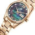 Механизм часов кварцевый, питание от батарейки, что обеспечивает точность хода и минимальное обслуживание. На циферблате отображаются функции даты, дня недели делая их особенно удобными для повседневного использования.