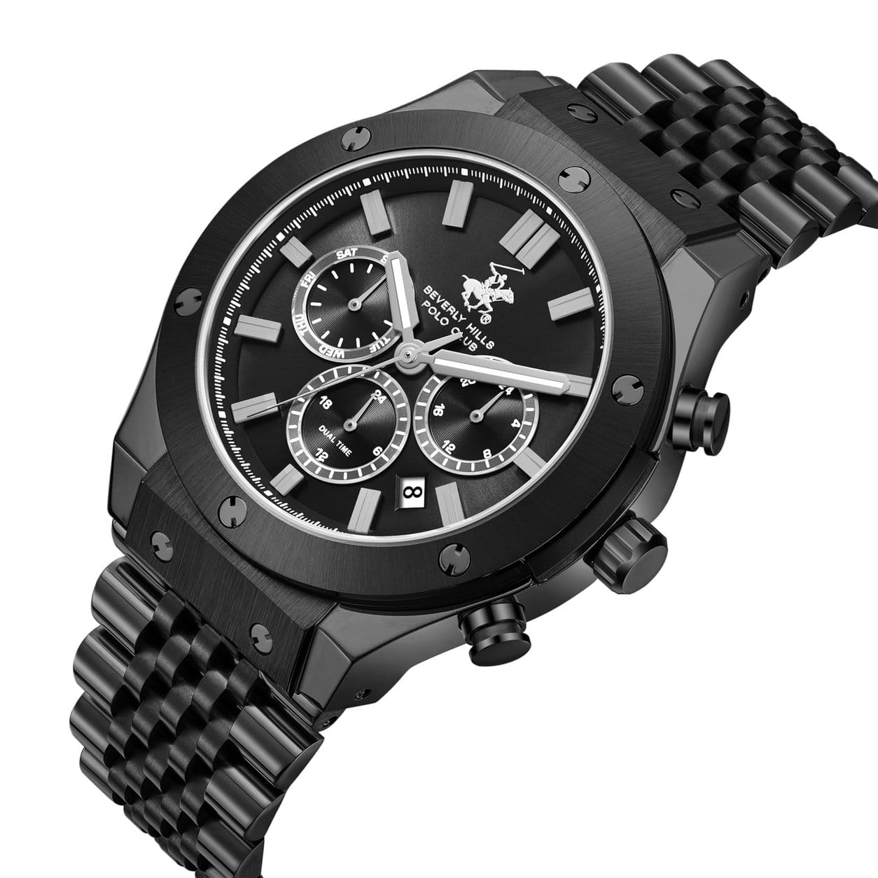 Часы Beverly Hills Polo Club BP3773X.650 — это идеальное сочетание силы, стиля и современных технологий. Модель выполнена в круглом корпусе из высококачественной нержавеющей стали с IP-покрытиемIP-покрытиеМетод ионного напыления. Демонстрирует повышенную устойчивость к истиранию, окислению и химическим веществам. Под воздействием высокого давления и температуры около 1500°C молекулы металла надёжно соединяются с частицами корпуса часов., что гарантирует прочность и долговечность. Механизм часов кварцевый, питание от батарейки, что обеспечивает точность хода и минимальное обслуживание. На циферблате отображаются функции даты, дня недели и 12/24-часовой формат времени, делая их особенно удобными для повседневного использования. Циферблат защищен минеральным стекломМинеральное стеклоМинеральное стекло представляет собой искусственно выращенный минерал кварца. Такое стекло отличается особой устойчивостью к повреждениям и царапинам. Уступает по некоторым качествам сапфировому стеклу. с сапфировым покрытием, которое устойчиво к появлению царапин и сохраняет чистоту взгляда на протяжении длительного времени. Стрелки оснащены люминесцентным покрытиемЛюминесцентное покрытиеПозволяет считывать показания времени в темноте. Производители наносят на стрелки, часовые индексы, безель или поверхность циферблата светонакопительный состав, дающий холодное свечение., обеспечивающим отличную видимость даже при слабом освещении. БезельБезельВнешний ободок, закрепляющий стекло. В спортивных часах так называется поворотное кольцо с делениями на циферблате, выполняет роль таймера – замеряет отрезки времени на шкале. Неподвижный безель – элемент декора. Однонаправленно вращающийся безель на дайверских часах позволяет фиксировать моменты погружения и выныривания на поверхность. с IP-покрытиемIP-покрытиеМетод ионного напыления. Демонстрирует повышенную устойчивость к истиранию, окислению и химическим веществам. Под воздействием высокого давления и температуры около 1500°C молекулы металла надёжно соединяются с частицами корпуса часов.. Стальной браслет с IP-покрытиемIP-покрытиеМетод ионного напыления. Демонстрирует повышенную устойчивость к истиранию, окислению и химическим веществам. Под воздействием высокого давления и температуры около 1500°C молекулы металла надёжно соединяются с частицами корпуса часов. на раскладной застёжкеРаскладная застёжкаТакой тип застёжки используется только на браслетах из металла. Она никогда не раскрывается полностью, происходит разделение на 2 и более частей. Раскладывающая застёжка снизит вероятность потери часов к минимуму.. Часы обладают водозащитой до 50 метров, позволит защитить корпус от случайных брызг или капель дождя.