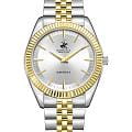 BEVERLY HILLS POLO CLUB BP3830X.230 — стильные мужские часы, сочетающие спортивную динамику и функциональность. Крупный корпус выполнен из нержавеющей стали серебристого цвета, диаметром 39 мм, гармонично дополнен стальным браслетом с частичным IP-покрытиемIP-покрытиеМетод ионного напыления. Демонстрирует повышенную устойчивость к истиранию, окислению и химическим веществам. Под воздействием высокого давления и температуры около 1500°C молекулы металла надёжно соединяются с частицами корпуса часов. на застёжке-бабочке с кнопкамиЗастёжка "бабочка"Такой вид застёжки дополняется предохранителями, помогающими избежать случайного раскрытия браслета. Обладают изящным исполнением. . Циферблат с акцентными стрелками и метками, что делает модель более практичной. Минеральное стеклоМинеральное стеклоМинеральное стекло представляет собой искусственно выращенный минерал кварца. Такое стекло отличается особой устойчивостью к повреждениям и царапинам. Уступает по некоторым качествам сапфировому стеклу. с сапфировым покрытием защищает циферблат от царапин, а кварцевый механизм обеспечивает высокую точность. Неподвижный рифленый безельБезельВнешний ободок, закрепляющий стекло. В спортивных часах так называется поворотное кольцо с делениями на циферблате, выполняет роль таймера – замеряет отрезки времени на шкале. Неподвижный безель – элемент декора. Однонаправленно вращающийся безель на дайверских часах позволяет фиксировать моменты погружения и выныривания на поверхность. с IP-покрытиемIP-покрытиеМетод ионного напыления. Демонстрирует повышенную устойчивость к истиранию, окислению и химическим веществам. Под воздействием высокого давления и температуры около 1500°C молекулы металла надёжно соединяются с частицами корпуса часов. золотистого цвета. Благодаря своей универсальной эстетике эти часы уместны и в деловой среде, и в повседневном образе. Идеальный выбор для тех, кто ценит элегантный дизайн и качество. Водозащита до 50 метров позволит защитить корпус от случайных брызг или капель дождя.