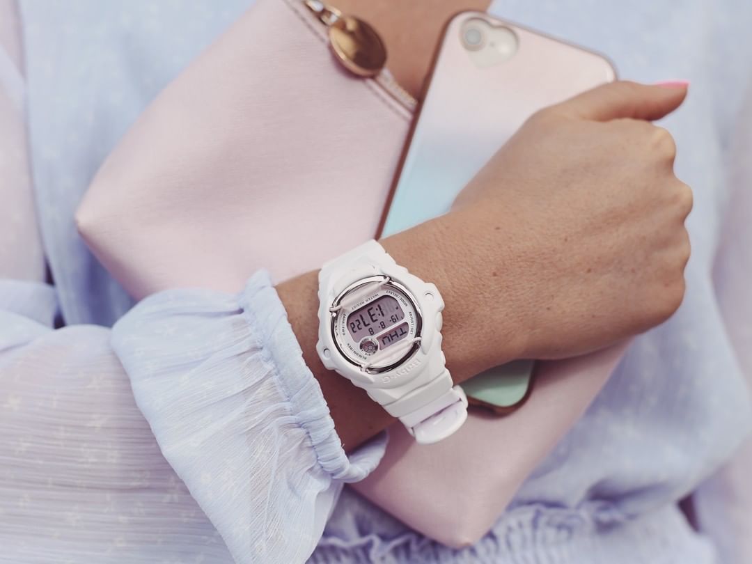 Женские японские часы Casio Baby-G BG-169M-4ER из коллекции Baby-G отличаются компактными размерами и изящно смотрятся на женском запястье.