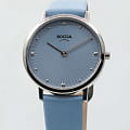 Элегантные женские часы Boccia 3365-01 станут неотъемлемой частью вашего повседневного стиля. Эти часы оборудованы надежным кварцевым механизмом Miyota GL22, обеспечивающим высокую точность и бесперебойную работу. Центральные часовая и минутная стрелки изящно выделяются на стильном голубом циферблате, создавая гармоничный и современный образ. Корпус часов выполнен из суперлегкого титана, что делает их не только прочными, но и комфортными в ношении. Круглый корпус диаметром 34 мм придаёт часам классический и универсальный вид. Голубой кожаный ремешок с традиционной застежкой идеально дополняет общий дизайн, добавляя яркий акцент. Прочное минеральное стеклоМинеральное стеклоМинеральное стекло представляет собой искусственно выращенный минерал кварца. Такое стекло отличается особой устойчивостью к повреждениям и царапинам. Уступает по некоторым качествам сапфировому стеклу. защищает циферблат от мелких механических повреждений, обеспечивая долговечность и сохранение первоначального внешнего вида. Водостойкость уровня WR 50 позволяет не беспокоиться о попадании влаги при мытье рук или в дождливую погоду.