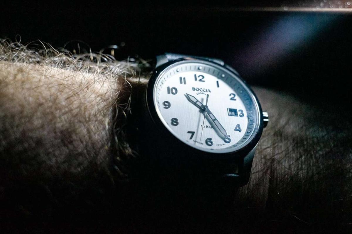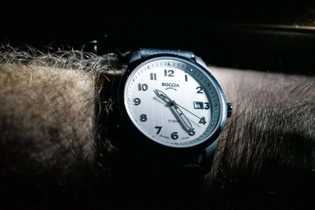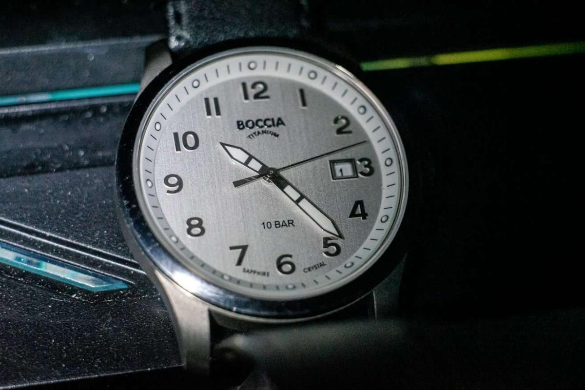Мужские наручные часы Boccia Titanium 3626-01 с надёжным кварцевым механизмом. Корпус часов изготовлен из титана. Сапфировое стеклоСапфировое стеклоПрочный и надёжный материал из кристалла сапфира синтетического происхождения, характеризующийся особой твёрдостью и устойчивостью к царапинам и повреждениям. устойчивое к мелким механическим повреждениям.. Класс водозащиты: 100 метров, позволит плавать, нырять и заниматься другими водными видами спорта. Окошко даты в положении 3 часа. Кожаный ремешок на стандартной застёжке. Стрелки и метки с люминесцентным покрытиемЛюминесцентное покрытиеПозволяет считывать показания времени в темноте. Производители наносят на стрелки, часовые индексы, безель или поверхность циферблата светонакопительный состав, дающий холодное свечение..