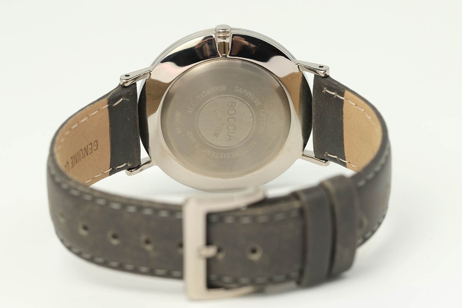 Мужские наручные часы Boccia Titanium 3642-01 с надёжным кварцевым механизмом. Сапфировое стеклоСапфировое стеклоПрочный и надёжный материал из кристалла сапфира синтетического происхождения, характеризующийся особой твёрдостью и устойчивостью к царапинам и повреждениям. устойчивое к мелким механическим повреждениям. Корпус часов изготовлен из титана. Кожаный ремешок на стандартной застёжке. Секундная стрелка на отдельном циферблате. Класс водозащиты: 30 метров, позволит защитить корпус от случайных брызг или капель дождя.