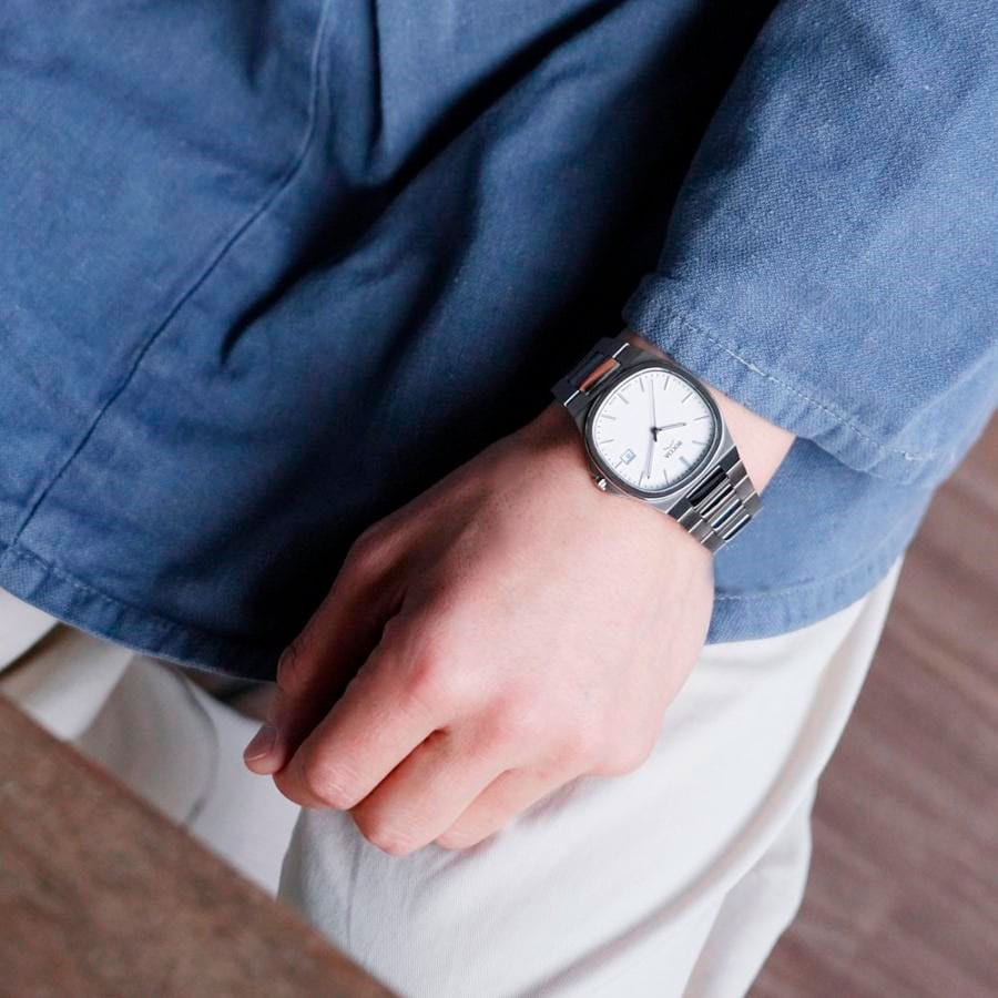 Часы оснащены кварцевым механизмом, обеспечивающим точный ход. Окно даты расположено на отметке «3 часа» для удобного отслеживания текущей даты.