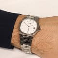 Браслет из титана оснащён раскладной застёжкойРаскладная застёжкаТакой тип застёжки используется только на браслетах из металла. Она никогда не раскрывается полностью, происходит разделение на 2 и более частей. Раскладывающая застёжка снизит вероятность потери часов к минимуму., обеспечивающей удобную фиксацию на запястье. Водонепроницаемость 50 метров (5 ATM) делает модель отличным выбором для повседневного использования и защиты от случайных брызг.