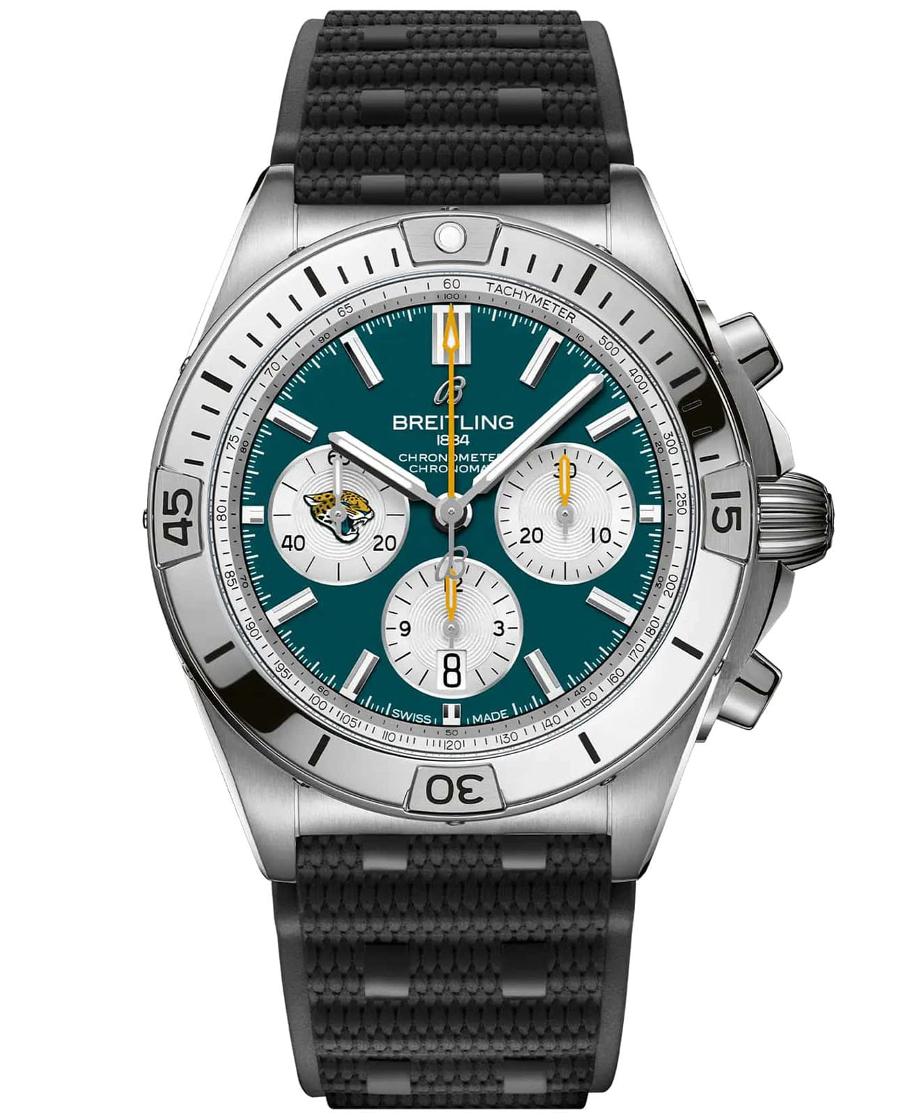 Швейцарские мужские механические часы Breitling Chronomat B01 42 NFL Jacksonville Jaguars Edition AB01342B1L3S1 с хронографом