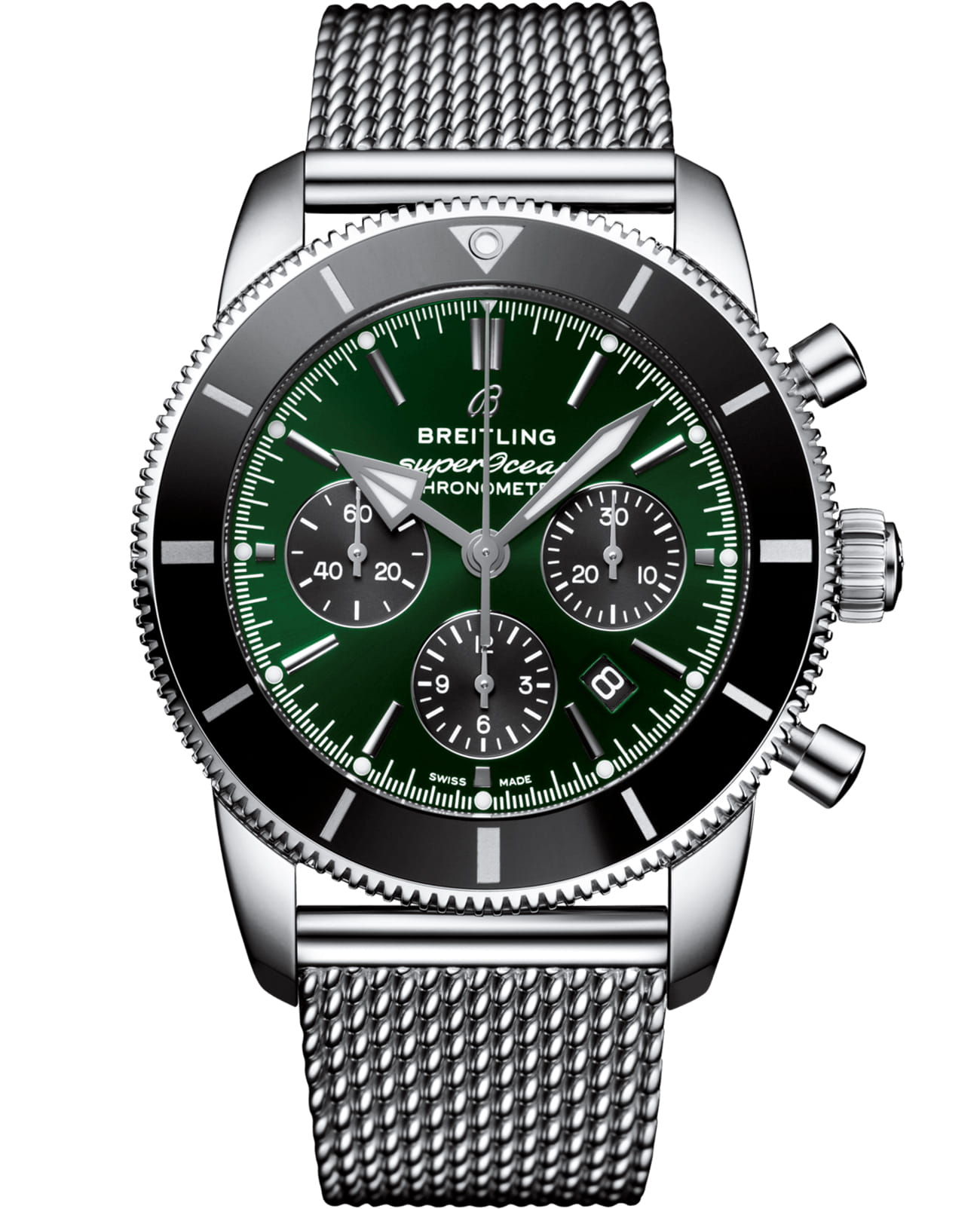 Спортивные и элегантные Superocean Heritage служат символом активного образа жизни, неразрывно связанного с морем. Тираж серии Superocean Heritage, которую представляют надежные классические часы с зеленым циферблатом и контрастными черными счетчиками, ограничен 500 экземплярами. Эта изысканная модель для дайверов отличается необычными стрелками треугольной формы и оснащена вращающимся в одном направлении безелем с полированным керамическим кольцом.