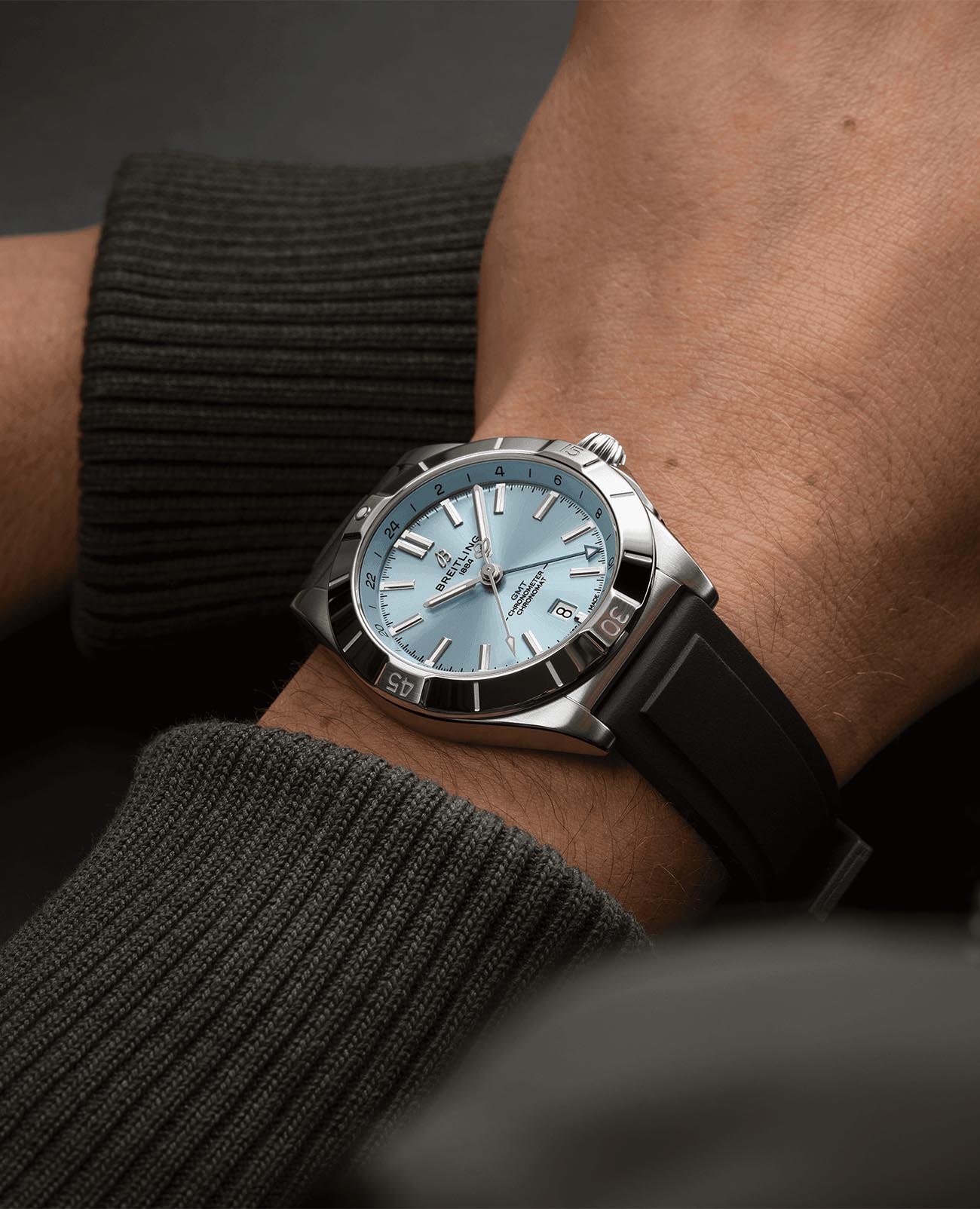 Мужские швейцарские часы Breitling Chronomat Automatic GMT 40 P32398101C1S1, механический механизм (автоматический калибр) с высокой точностью. Часы Chronomat Automatic GMTGMTОтображение времени второго часового пояса.Такая функция особенно актуальна для путешественников и бизнесменов,которые общаются с людьми из разных стран,теперь вы всегда будете знать,какой час у вашего партнёра или близкого человека. 40 - это дань уважения Breitling путешествиям не только благодаря дисплею с двумя часовыми поясами, но и благодаря своей непринужденной эстетике. 24-часовая шкала позволяет пользователю отслеживать второй часовой пояс и с первого взгляда определять, день сейчас или ночь, а заводная головка “луковица” (классическая функция хронометра, получившая название из-за своей рифленой формы купола) позволяет легко регулировать время. Сапфировое стеклоСапфировое стеклоПрочный и надёжный материал из кристалла сапфира синтетического происхождения, характеризующийся особой твёрдостью и устойчивостью к царапинам и повреждениям. устойчивое к появлению царапин, обладающее высокой прозрачностью. Класс водозащиты: 200 метров, позволит плавать, нырять и заниматься другими водными видами спорта. Корпус часов изготовлен из стали. Стальной браслет с застёжкой-бабочкой с кнопкамиЗастёжка "бабочка"Такой вид застёжки дополняется предохранителями, помогающими избежать случайного раскрытия браслета. Обладают изящным исполнением. . Каучуковый ремешок с раскладной застёжкойРаскладная застёжкаТакой тип застёжки используется только на браслетах из металла. Она никогда не раскрывается полностью, происходит разделение на 2 и более частей. Раскладывающая застёжка снизит вероятность потери часов к минимуму.. Часы имеют сертификат COSCСертификат COSCОфициальный сертификат, подтверждающий то, что часы ходят с особо высокой точностью. Для получения документа часы подвергаются тестовым испытаниям, разработанным швейцарским институтом тестирования хронометров COSC. Допустимая норма для механических часов -4/+6 секунд в день, для кварцевых моделей +/- 0,07 секунд в день.. Окошко даты находится в положении 6 часов. Известные как “часы на все случаи жизни”, часы Chronomat сейчас актуальны как никогда благодаря практичным размерам GMT 40 и сдержанному стилю. Стрелки и метки с люминесцентным покрытиемЛюминесцентное покрытиеПозволяет считывать показания времени в темноте. Производители наносят на стрелки, часовые индексы, безель или поверхность циферблата светонакопительный состав, дающий холодное свечение..