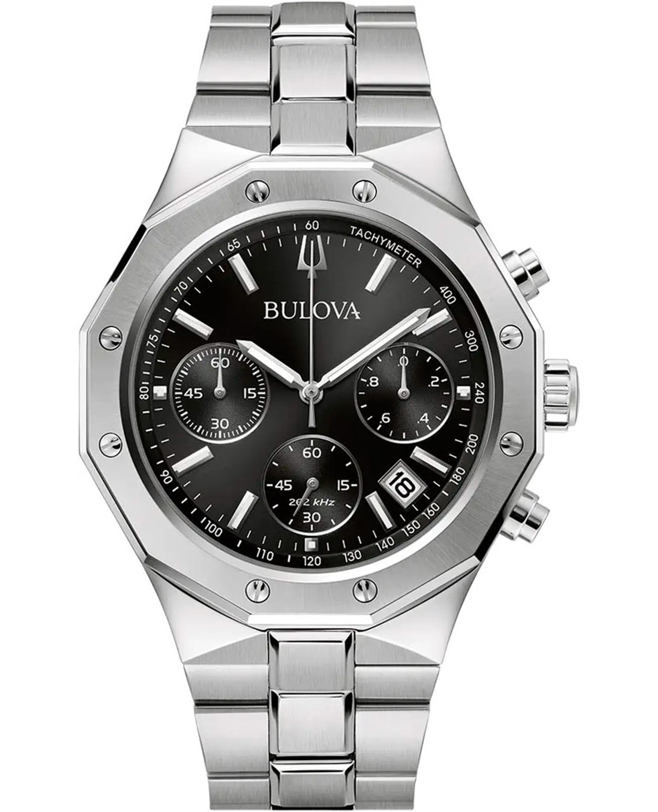 Мужские кварцевые часы-хронографХронографФункция позволяет измерять отрезки времени с особой точностью: часы, минуты, секунды. Верным признаком хронографа является наличие на циферблате 3 дополнительных окошек-счётчиков. Bulova Classic 96B410 – отражающий идеальное сочетание современного дизайна, надёжности и функциональности. Элегантный облик станет превосходным завершением образа, наделив его индивидуальным характером. Корпус из нержавеющей стали, диаметром 44 мм идеально сбалансирован и элегантен. Минеральное стеклоМинеральное стеклоМинеральное стекло представляет собой искусственно выращенный минерал кварца. Такое стекло отличается особой устойчивостью к повреждениям и царапинам. Уступает по некоторым качествам сапфировому стеклу. защищает циферблат от царапин и устойчивое к мелким механическим повреждениям. Шкала тахиметраТахиметрРазмеченная шкала, располагается на ободке или безеле часов. Тахиметр позволяет рассчитать скорость на определённом участке пути, расстояние измеряется в километрах или милях. на циферблате. Стальной браслет на раскладной застёжкеРаскладная застёжкаТакой тип застёжки используется только на браслетах из металла. Она никогда не раскрывается полностью, происходит разделение на 2 и более частей. Раскладывающая застёжка снизит вероятность потери часов к минимуму. обеспечивает комфортное ношение. Стрелки и метки с люминесцентным покрытиемЛюминесцентное покрытиеПозволяет считывать показания времени в темноте. Производители наносят на стрелки, часовые индексы, безель или поверхность циферблата светонакопительный состав, дающий холодное свечение. позволяющие легко определять время даже в темноте. Водозащита 100 метров, позволит плавать, нырять и заниматься другими водными видами спорта. Окошко даты находится в положении между 4 и 5 часов. Эта модель – отличный выбор для тех, кто ищет сочетание стиля, качества и функциональности. Часы станут не только полезным аксессуаром, но и выразительным элементом вашего имиджа.