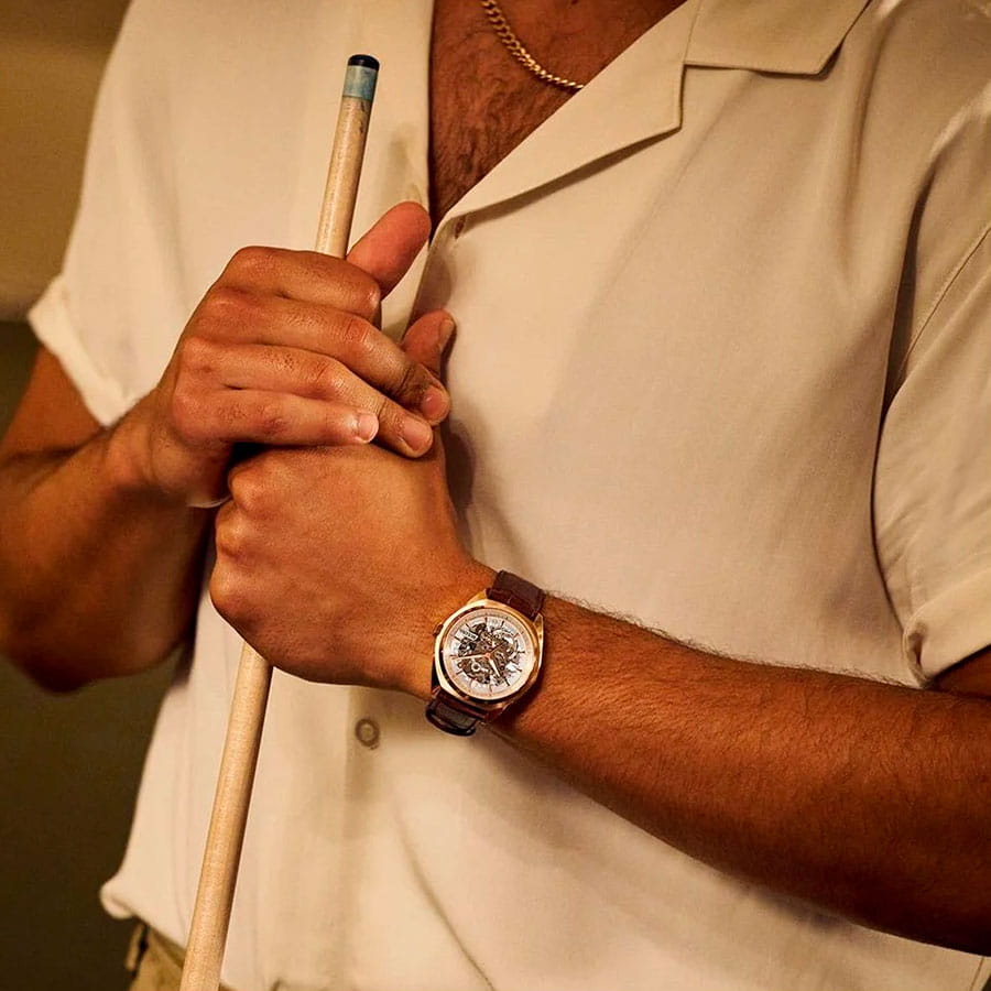 Мужские механические часы-скелетоны с автоподзаводом Bulova Surveyor 97A175 – отражающий идеальное сочетание современного дизайна, надёжности и функциональности. Элегантный облик станет превосходным завершением образа, наделив его индивидуальным характером. Корпус из нержавеющей стали с PVD-покрытиемPVDУльтратонкое покрытие наносится в технике вакуумного напыления, сочетает в себе нитрид титана особой прочности со слоем золота или оксида хрома. Несёт в себе декоративную или защитную функцию. цвета розового золота, диаметром 41 мм идеально сбалансирован и элегантен. Минеральное стеклоМинеральное стеклоМинеральное стекло представляет собой искусственно выращенный минерал кварца. Такое стекло отличается особой устойчивостью к повреждениям и царапинам. Уступает по некоторым качествам сапфировому стеклу. защищает циферблат от царапин и устойчивое к мелким механическим повреждениям. Кожаный ремешок на застёжке-бабочке с кнопкамиЗастёжка "бабочка"Такой вид застёжки дополняется предохранителями, помогающими избежать случайного раскрытия браслета. Обладают изящным исполнением. обеспечивает комфортное ношение. Стрелки с люминесцентным покрытиемЛюминесцентное покрытиеПозволяет считывать показания времени в темноте. Производители наносят на стрелки, часовые индексы, безель или поверхность циферблата светонакопительный состав, дающий холодное свечение.. Водозащита 30 метров позволит защитить корпус от случайных брызг или капель дождя. Эта модель – отличный выбор для тех, кто ищет сочетание стиля, качества и функциональности. Часы станут не только полезным аксессуаром, но и выразительным элементом вашего имиджа.