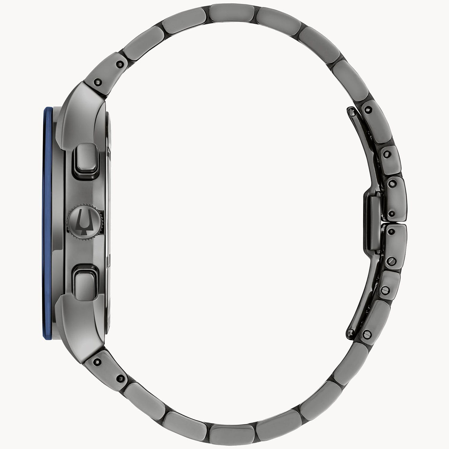 Мужские кварцевые часы-хронографХронографФункция позволяет измерять отрезки времени с особой точностью: часы, минуты, секунды. Верным признаком хронографа является наличие на циферблате 3 дополнительных окошек-счётчиков. Bulova Millennia 98C143 – отражающий идеальное сочетание современного дизайна, надёжности и функциональности. Элегантный облик станет превосходным завершением образа, наделив его индивидуальным характером. Корпус из нержавеющей стали с IP-покрытиемIP-покрытиеМетод ионного напыления. Демонстрирует повышенную устойчивость к истиранию, окислению и химическим веществам. Под воздействием высокого давления и температуры около 1500°C молекулы металла надёжно соединяются с частицами корпуса часов. серого цвета идеально сбалансирован и элегантен. Неповоротный безельБезельВнешний ободок, закрепляющий стекло. В спортивных часах так называется поворотное кольцо с делениями на циферблате, выполняет роль таймера – замеряет отрезки времени на шкале. Неподвижный безель – элемент декора. Однонаправленно вращающийся безель на дайверских часах позволяет фиксировать моменты погружения и выныривания на поверхность. с IP-покрытиемIP-покрытиеМетод ионного напыления. Демонстрирует повышенную устойчивость к истиранию, окислению и химическим веществам. Под воздействием высокого давления и температуры около 1500°C молекулы металла надёжно соединяются с частицами корпуса часов. синего цвета. Минеральное стеклоМинеральное стеклоМинеральное стекло представляет собой искусственно выращенный минерал кварца. Такое стекло отличается особой устойчивостью к повреждениям и царапинам. Уступает по некоторым качествам сапфировому стеклу. защищает циферблат от царапин и устойчивое к мелким механическим повреждениям. Дата в позиции 3 часов. Стальной браслет с IP-покрытиемIP-покрытиеМетод ионного напыления. Демонстрирует повышенную устойчивость к истиранию, окислению и химическим веществам. Под воздействием высокого давления и температуры около 1500°C молекулы металла надёжно соединяются с частицами корпуса часов. серого цвета на застёжке-бабочке с кнопкамиЗастёжка "бабочка"Такой вид застёжки дополняется предохранителями, помогающими избежать случайного раскрытия браслета. Обладают изящным исполнением.  обеспечивает комфортное ношение. Водозащита 30 метров, позволит защитить корпус от случайных брызг или капель дождя. Часы с люминесцентным покрытиемЛюминесцентное покрытиеПозволяет считывать показания времени в темноте. Производители наносят на стрелки, часовые индексы, безель или поверхность циферблата светонакопительный состав, дающий холодное свечение. позволяющие легко определять время даже в темноте. Эта модель – отличный выбор для тех, кто ищет сочетание стиля, качества и функциональности. Часы станут не только полезным аксессуаром, но и выразительным элементом вашего имиджа.