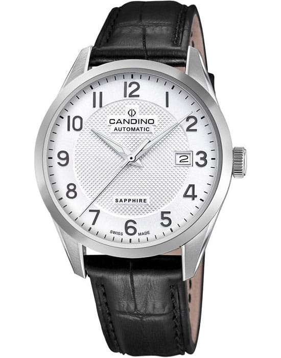 Мужские швейцарские часы с автоподзаводом Candino C4710/1, механический механизм (автоматический калибр) с высокой точностью. Сапфировое стекло устойчивое к появлению царапин, обладающее высокой прозрачностью. Класс водозащиты: 100 метров, позволит плавать, нырять и заниматься другими водными видами спорта. Корпус часов изготовлен из стали, цвета.