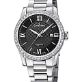 Женские швейцарские наручные часы Candino Elegance C4740/4 с надёжным кварцевым механизмом. Корпус и браслет часов изготовлены из нержавеющей стали. Сапфировое стеклоСапфировое стеклоПрочный и надёжный материал из кристалла сапфира синтетического происхождения, характеризующийся особой твёрдостью и устойчивостью к царапинам и повреждениям. устойчивое к мелким механическим повреждениям. Стальной браслет на раскладной застёжкеРаскладная застёжкаТакой тип застёжки используется только на браслетах из металла. Она никогда не раскрывается полностью, происходит разделение на 2 и более частей. Раскладывающая застёжка снизит вероятность потери часов к минимуму.. БезельБезельВнешний ободок, закрепляющий стекло. В спортивных часах так называется поворотное кольцо с делениями на циферблате, выполняет роль таймера – замеряет отрезки времени на шкале. Неподвижный безель – элемент декора. Однонаправленно вращающийся безель на дайверских часах позволяет фиксировать моменты погружения и выныривания на поверхность. инкрустирован цирконами. Окошко даты находится в положении 3 часа.