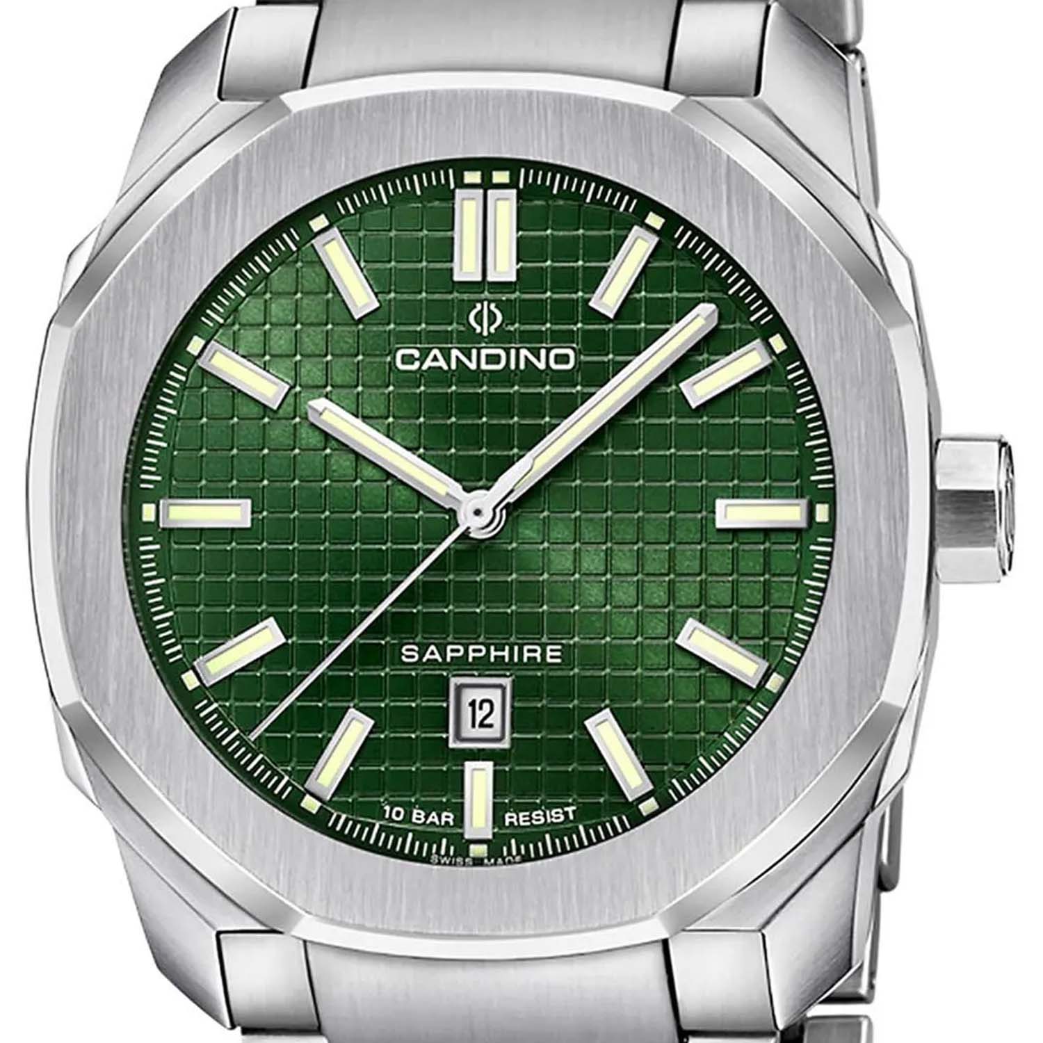 Мужские наручные часы Candino Gents Sport C4754/3 с надёжным кварцевым механизмом. Корпус и браслет часов изготовлены из нержавеющей стали. Сапфировое стеклоСапфировое стеклоПрочный и надёжный материал из кристалла сапфира синтетического происхождения, характеризующийся особой твёрдостью и устойчивостью к царапинам и повреждениям., устойчивое к мелким механическим повреждениям. Окошко даты находится в положении 6 часов. Стрелки и метки с люминесцентным покрытиемЛюминесцентное покрытиеПозволяет считывать показания времени в темноте. Производители наносят на стрелки, часовые индексы, безель или поверхность циферблата светонакопительный состав, дающий холодное свечение.. Стальной браслет на раскладной застёжкеРаскладная застёжкаТакой тип застёжки используется только на браслетах из металла. Она никогда не раскрывается полностью, происходит разделение на 2 и более частей. Раскладывающая застёжка снизит вероятность потери часов к минимуму.. Класс водозащиты: 100 метров, позволит плавать, нырять и заниматься другими водными видами спорта.