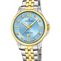 Женские наручные часы Candino Lady Elegance Date C4767/2 с надёжным кварцевым механизмом. Корпус и браслет часов изготовлены из нержавеющей стали. Сапфировое стеклоСапфировое стеклоПрочный и надёжный материал из кристалла сапфира синтетического происхождения, характеризующийся особой твёрдостью и устойчивостью к царапинам и повреждениям. повышенной прозрачности, устойчивое к мелким механическим повреждениям. Стальной браслет с частичным PVD-покрытиемPVDУльтратонкое покрытие наносится в технике вакуумного напыления, сочетает в себе нитрид титана особой прочности со слоем золота или оксида хрома. Несёт в себе декоративную или защитную функцию. на раскладной застёжкеРаскладная застёжкаТакой тип застёжки используется только на браслетах из металла. Она никогда не раскрывается полностью, происходит разделение на 2 и более частей. Раскладывающая застёжка снизит вероятность потери часов к минимуму.. Стрелки с люминесцентным покрытиемЛюминесцентное покрытиеПозволяет считывать показания времени в темноте. Производители наносят на стрелки, часовые индексы, безель или поверхность циферблата светонакопительный состав, дающий холодное свечение.. Циферблат инкрустирован кристаллами. Класс водозащиты: 50 метров, позволит защитить корпус от случайных брызг или капель дождя. Окошко даты находится в положении 6 часов.