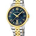 Женские наручные часы Candino C4767/7 из коллекции Lady Elegance сочетают в себе элегантный дизайн и надежность современных технологий. Модель обладает круглым корпусом диаметром 34 мм, изготовленным из нержавеющей стали, что обеспечивает высокую устойчивость к внешним воздействиям . Браслет выполнен из металла с частичным PVD-покрытиемPVDУльтратонкое покрытие наносится в технике вакуумного напыления, сочетает в себе нитрид титана особой прочности со слоем золота или оксида хрома. Несёт в себе декоративную или защитную функцию. и с раскладной застежкойРаскладная застёжкаТакой тип застёжки используется только на браслетах из металла. Она никогда не раскрывается полностью, происходит разделение на 2 и более частей. Раскладывающая застёжка снизит вероятность потери часов к минимуму., гарантирующей комфортное ношение и безопасность . Перламутровый синий циферблат оснащен окном даты, а стрелки и метки имеют люминесцентное покрытиеЛюминесцентное покрытиеПозволяет считывать показания времени в темноте. Производители наносят на стрелки, часовые индексы, безель или поверхность циферблата светонакопительный состав, дающий холодное свечение., обеспечивающее видимость в темноте . БезельБезельВнешний ободок, закрепляющий стекло. В спортивных часах так называется поворотное кольцо с делениями на циферблате, выполняет роль таймера – замеряет отрезки времени на шкале. Неподвижный безель – элемент декора. Однонаправленно вращающийся безель на дайверских часах позволяет фиксировать моменты погружения и выныривания на поверхность. с PVD-покрытиемPVDУльтратонкое покрытие наносится в технике вакуумного напыления, сочетает в себе нитрид титана особой прочности со слоем золота или оксида хрома. Несёт в себе декоративную или защитную функцию.. Для защиты используется сапфировое стеклоСапфировое стеклоПрочный и надёжный материал из кристалла сапфира синтетического происхождения, характеризующийся особой твёрдостью и устойчивостью к царапинам и повреждениям., которое противостоит появлению царапин и обеспечивает длительную сохранность внешнего вида часов . Часы работают на кварцевом механизме, что гарантирует точное время без необходимости подзаводки . Водонепроницаемость часов достигает 5 атмосфер (50 метров), что позволяет использовать их во время повседневных водных процедур, однако не рекомендуется для плавания или дайвинга .
