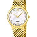 Женские кварцевые часы Candino из коллекции Series 1947 — это утончённый аксессуар, сочетающий минимализм и швейцарское качество. Корпус диаметром 33,5 мм и толщиной 6 мм выполнен из нержавеющей стали 316L с PVD-покрытиемPVDУльтратонкое покрытие наносится в технике вакуумного напыления, сочетает в себе нитрид титана особой прочности со слоем золота или оксида хрома. Несёт в себе декоративную или защитную функцию. жёлтого золота. Циферблат бежевого цвета оформлен двумя стрелками без индикации даты, что придаёт дизайну чистоту и элегантность. Циферблат защищён сапфировым стекломСапфировое стеклоПрочный и надёжный материал из кристалла сапфира синтетического происхождения, характеризующийся особой твёрдостью и устойчивостью к царапинам и повреждениям., устойчивым к царапинам. Метки циферблата выполнены из циркония. Механизм — кварцевый произведённый в Швейцарии. Часы оснащены стальным браслетом с PVD-покрытиемPVDУльтратонкое покрытие наносится в технике вакуумного напыления, сочетает в себе нитрид титана особой прочности со слоем золота или оксида хрома. Несёт в себе декоративную или защитную функцию. жёлтого золота на застёжке «бабочка» с кнопкамиЗастёжка "бабочка"Такой вид застёжки дополняется предохранителями, помогающими избежать случайного раскрытия браслета. Обладают изящным исполнением. . Водонепроницаемость 50 м позволяет использовать часы в повседневных условиях. Гарантия — 2 года. Идеальный выбор для тех, кто ценит лаконичный стиль, точность и надёжность.