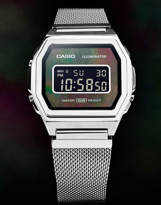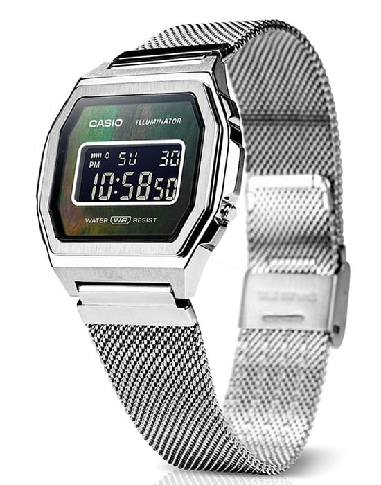 Аксессуар с фирменным для Casio 8-угольным корпусом будет гармонично смотреться как с деловым пиджаком, так и с повседневной водолазкой. Оригинальности добавляет переливающийся цифровой дисплей. Ударопрочный корпусУдаропрочный корпусМеханизм заключён в корпус, выполненный из современных материалов, устойчивых к ударам, механическим повреждениям и падению с высоты: инновационный пластик, карбон, нержавеющая сталь, титан. и браслет миланского плетения сделаны из нержавеющей стали 316L. Надёжное минеральное стекло. Срок работы батарейки - 3 года. Наличие будильника, секундомера, календаря. Светодиодная подсветкаСветодиодная подсветкаСветодиодная или LED-подсветка обеспечивает появление яркого холодного свечения за счёт LED-элементов - маленьких лампочек. Они потребляют минимальное количество энергии, чаще всего можно встретить 1 светодиод, в нижней части циферблата. дисплея. Габариты: 38 x 39,6 x 7,3 мм.