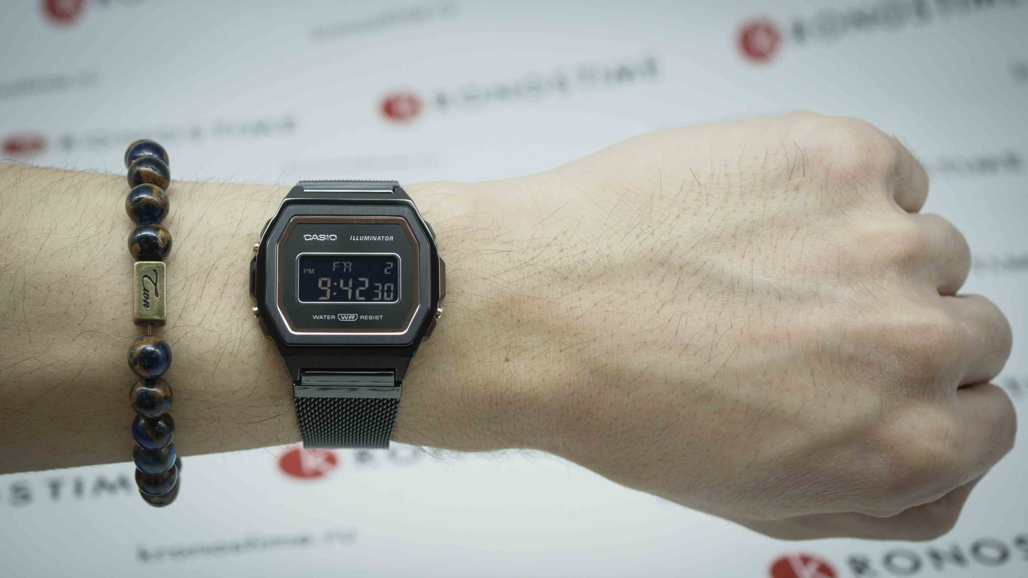 Японские мужские наручные часы Casio Collection A1000MB-1B, электронный механизм с высокой точностью. Класс водозащиты: 50 метров, позволит защитить корпус от случайных брызг или капель дождя. Корпус часов изготовлен из стали, черного цвета.