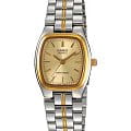 Японские женские часы с минеральным стекломМинеральное стеклоМинеральное стекло представляет собой искусственно выращенный минерал кварца. Такое стекло отличается особой устойчивостью к повреждениям и царапинам. Уступает по некоторым качествам сапфировому стеклу. Casio Collection LTP-1169G-9A, кварцевый механизм с высокой точностью. Класс водозащиты: 30 метров, позволит защитить корпус от случайных брызг или капель дождя. Корпус часов изготовлен из стали. Стальной браслет с частичным IP-покрытиемIP-покрытиеМетод ионного напыления. Демонстрирует повышенную устойчивость к истиранию, окислению и химическим веществам. Под воздействием высокого давления и температуры около 1500°C молекулы металла надёжно соединяются с частицами корпуса часов. на раскладной застёжкеРаскладная застёжкаТакой тип застёжки используется только на браслетах из металла. Она никогда не раскрывается полностью, происходит разделение на 2 и более частей. Раскладывающая застёжка снизит вероятность потери часов к минимуму.. БезельБезельВнешний ободок, закрепляющий стекло. В спортивных часах так называется поворотное кольцо с делениями на циферблате, выполняет роль таймера – замеряет отрезки времени на шкале. Неподвижный безель – элемент декора. Однонаправленно вращающийся безель на дайверских часах позволяет фиксировать моменты погружения и выныривания на поверхность. с IP-покрытиемIP-покрытиеМетод ионного напыления. Демонстрирует повышенную устойчивость к истиранию, окислению и химическим веществам. Под воздействием высокого давления и температуры около 1500°C молекулы металла надёжно соединяются с частицами корпуса часов..