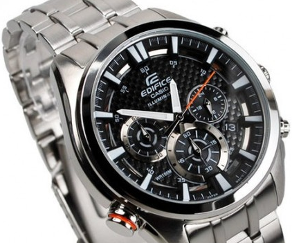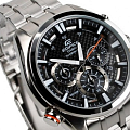 Стильный, мужские наручные часы Casio Edifice надежные и практичные. Кварцевый японский механизм Miyota. Точность хода не хуже -10 +15 сек./в месяц. Часы оснащены функцией хронографа, с точностью 1/10с и временем измерения 1ч. Циферблат черного цвета с контрастными элементами дизайна. Флюорисцентное напыление на стрелках и дисплее часов позволяет отчетливее видеть каждую цифру. Корпус и браслет выполнены из нержавеющей стали. Минеральное стекло устойчиво к появлению царапин. Водонепроницаемость 100М. В часах можно плавать. Степень водонепроницаемости не является величиной, эквивалентной функциональной рабочей глубине.