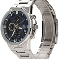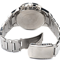 Кварцевый японский механизм Miyota. Точность хода не хуже -10 +15 сек./в месяц. Часы оснащены функцией хронографа, с точностью 1/10с и временем измерения 1ч. Циферблат черного цвета с контрастными синими элементами дизайна. Стрелки и индексы с светонакопительным нанесением. Корпус выполнен из нержавеющей стали. Минеральное стекло устойчиво к появлению царапин. Водонепроницаемость 100М. В часах можно плавать. Степень водонепроницаемости не является величиной, эквивалентной функциональной рабочей глубине.