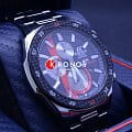 Аксессуар сочетает красный, синий, серебристые оттенки - цвета легендарного гоночного автомобиля Scuderia Toro Rosso STR14. Стальной безельБезельВнешний ободок, закрепляющий стекло. В спортивных часах так называется поворотное кольцо с делениями на циферблате, выполняет роль таймера – замеряет отрезки времени на шкале. Неподвижный безель – элемент декора. Однонаправленно вращающийся безель на дайверских часах позволяет фиксировать моменты погружения и выныривания на поверхность. с оригинальным узором имеет карбоновую вставку для усиления ударопрочных свойств. Срок службы батарейки составляет 5 лет без необходимости замены. Стрелки и метки с люминесцентной подсветкойЛюминесцентное покрытиеПозволяет считывать показания времени в темноте. Производители наносят на стрелки, часовые индексы, безель или поверхность циферблата светонакопительный состав, дающий холодное свечение.. Подсветка экрана. Сапфировое стекло практически невозможно поцарапать. Предохранительная застёжка предотвращает случайное расстёгивание браслета. Секундомер, отображение даты. Габариты: 50,5 x 45,6 x 9,5 мм.