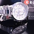 Стильные японские наручные кварцевые мужские часы. Круглый корпус и браслет часов выполнены из стали с антикоррозийными свойствами. Белый карбоновый циферблат с контрастными элементами дизайна. Водонепроницаемость 10 ATM. Минеральное стекло, устойчивое к появлению царапин. Часы оснащены функцией хронографа.