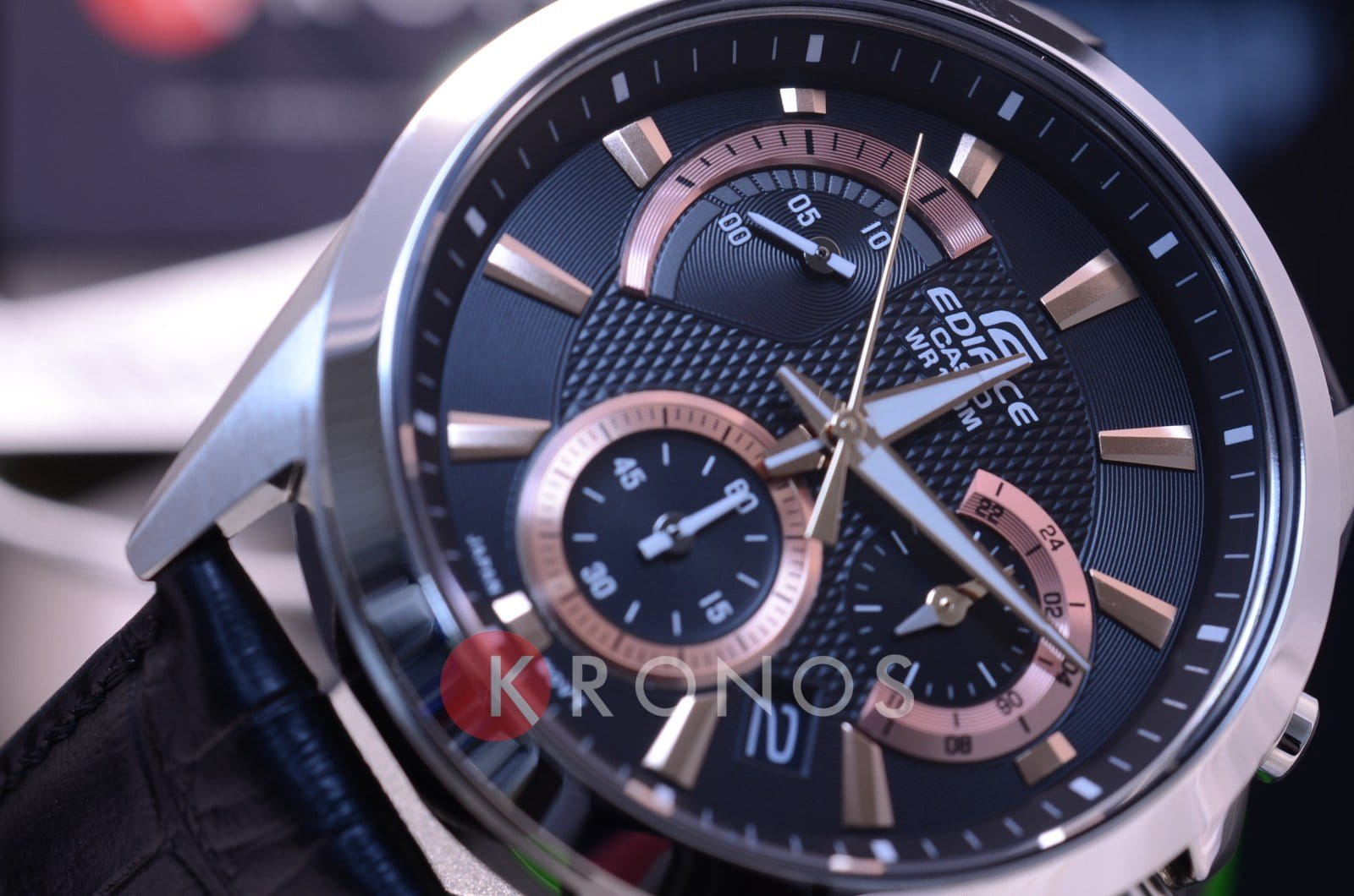 Японские мужские часы из коллекции Edifice для ценителей спортивного дизайна и безупречной точности хода.