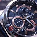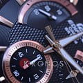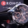 Кварцевый хронографХронографФункция позволяет измерять отрезки времени с особой точностью: часы, минуты, секунды. Верным признаком хронографа является наличие на циферблате 3 дополнительных окошек-счётчиков. отличается оригинальным дизайном циферблата, выдержанном в автомобильной стилистике. Стрелки, часовые метки, ободок отдельных счётчиков выполнены в цвете розового золота, они великолепно выделяются на чёрном фоне. Наручные часы одновременно воплощают классический и спортивный стиль, что делает их отличным вариантом на каждый день. Надёжное минеральное стекло. Чёрный ремешок из натуральной кожи. Завинчивающаяся задняя крышка. Водостойкость до 10 бар. Апертура даты, секундомер. Габариты: 51 x 43,8 x 12,4 мм.