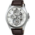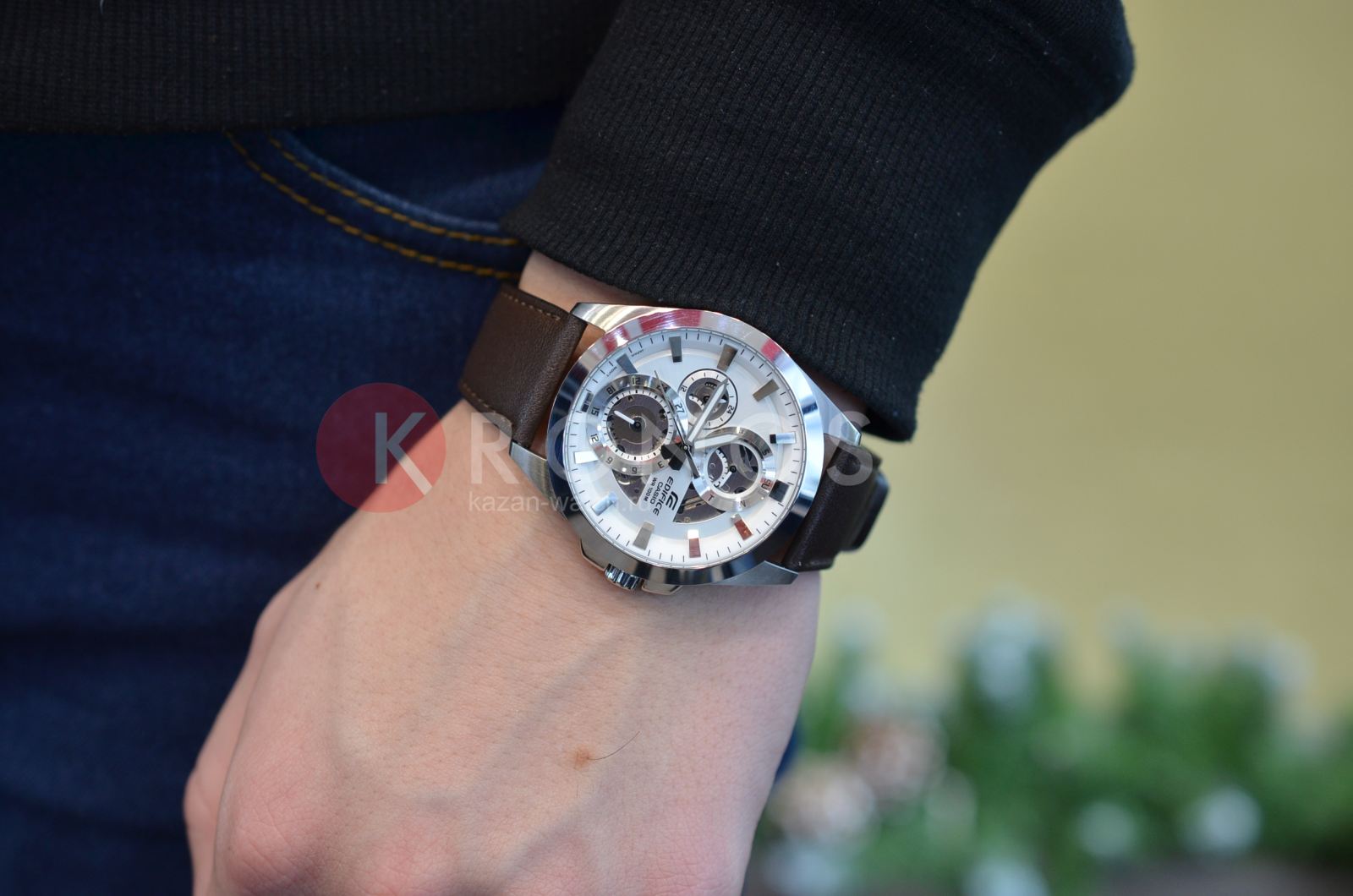 Стильный мужские наручные часы Casio Edifice надежные и практичные. Эффектный дизайн циферблата, стилизован под скелетоны. Точный кварцевый механизм Miyota (Япония).Точность хода: не хуже +/-20 секунд в месяц. Минеральное стекло, устойчивое к возникновению царапин. Корпус выполнен из высококачественного стального сплава 316L с высокими антикоррозийными свойствами. Ремешок из натуральной кожи коричневого цвета. Заводная головка с защитой. Выступы на корпусе защищают переводную коронку от негативного воздействия. Стрелочные указатели даты и дня недели. Стрелочный указатель 12/24 - х часового пояса. Водонепроницаемость (10 Бар).  Идеально подходит для плавания с маской и трубкой.