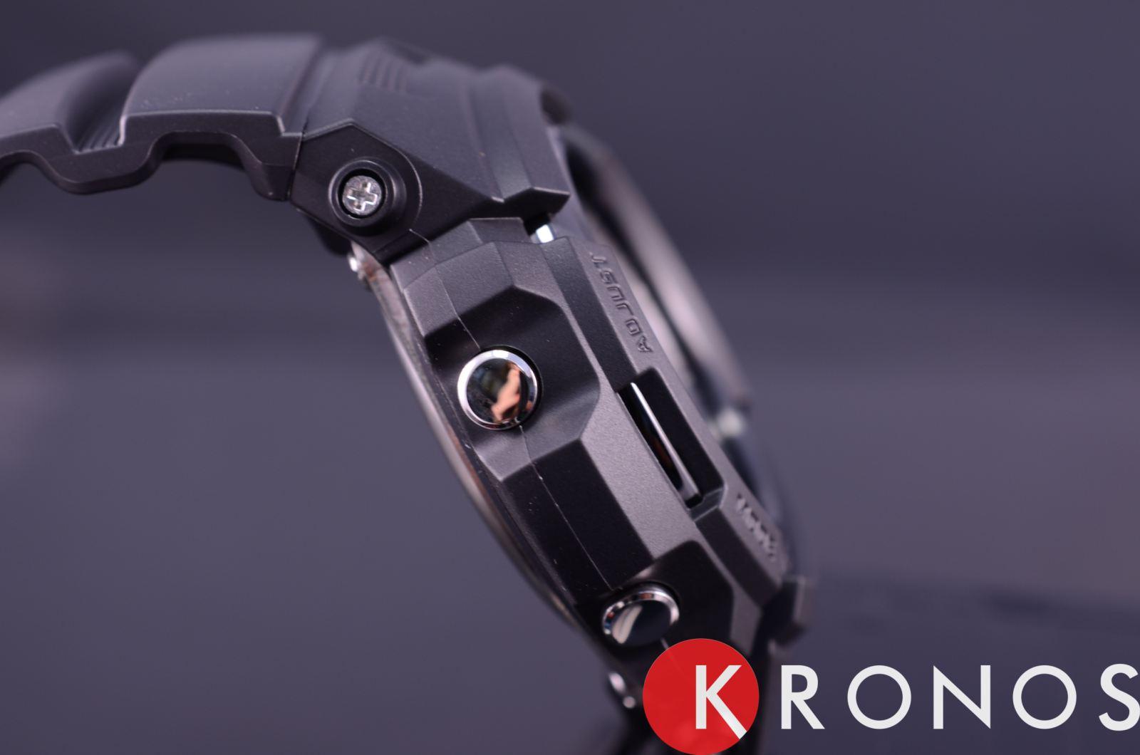 Наручные часы устойчивы к ударам и механическим повреждениям благодаря противоударному корпусуУдаропрочный корпусМеханизм заключён в корпус, выполненный из современных материалов, устойчивых к ударам, механическим повреждениям и падению с высоты: инновационный пластик, карбон, нержавеющая сталь, титан. из полимерного пластика, такой же материал был выбран для гибкого ремешка. Внимание сразу перетягивает на себя циферблат, отличающийся необычной мембранной текстурой. Модель получает заряд энергии от солнечной батареи, реализуется технология . Индикатор уровня заряда аккумулятора. 12/24-часовой формат отображения времени. Автоматическая светодиодная подсветкаСветодиодная подсветкаСветодиодная или LED-подсветка обеспечивает появление яркого холодного свечения за счёт LED-элементов - маленьких лампочек. Они потребляют минимальное количество энергии, чаще всего можно встретить 1 светодиод, в нижней части циферблата.. Водонепроницаемость 200 метров - часы пригодны для плавания. Минеральное стекло. Коррекция времени радиосигналом. Будильник, автоматический календарь до 2099 года, таймер обратного отсчёта, секундомер. Габариты: 52 x 46,4 x 14,9 мм.