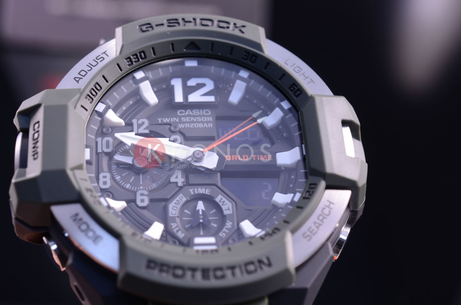 Компания Casio выпустила новинку в коллекции Olive Drab на основе модели GA-1100. Эти часы- новое поколение часов, разработанных специально для пилотов. Главной особенностью GA-1100 является уникальная функция управления мировым временем - часы способны отображать значения времени в двух городах одновременно, с помощью стрелки минут, часов и на встроенном дисплее. Часы просты в управлении и позволяют одним нажатием кнопки узнать время отлета и предполагаемого прибытия в пункт назначения, отследить температуру в кабине самолета и на взлетно-посадочной полосе и определить текущее месторасположение по встроенному компасу. Помимо этого, модель GA-1100 оснащена сверхъяркой подсветкой LED, что позволяет использовать часы вне зависимости от степени освещенности помещения.
