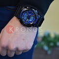 Аксессуар в спортивном стиле отличается необычным многоуровневым циферблатом, крупными деталями, оригинальными перфорированными стрелками. Привлекательности добавляют ярко-синие цветовые акценты. Наручные часы могут похвастаться противоударным корпусомУдаропрочный корпусМеханизм заключён в корпус, выполненный из современных материалов, устойчивых к ударам, механическим повреждениям и падению с высоты: инновационный пластик, карбон, нержавеющая сталь, титан. из полимерного пластика, материал устойчив к повреждениям любого характера. Японский высокоточный кварцевый механизм. Аккумулятор с 2-годичным сроком службы. Полимерный ремешок обеспечивает комфортное ношение. Светодиодная подсветкаСветодиодная подсветкаСветодиодная или LED-подсветка обеспечивает появление яркого холодного свечения за счёт LED-элементов - маленьких лампочек. Они потребляют минимальное количество энергии, чаще всего можно встретить 1 светодиод, в нижней части циферблата.. Надёжное минеральное стекло. Защита от влияния магнитного поля. Водостойкость 20 бар. ХронографХронографФункция позволяет измерять отрезки времени с особой точностью: часы, минуты, секунды. Верным признаком хронографа является наличие на циферблате 3 дополнительных окошек-счётчиков., автоматический календарь, таймер, функция мирового времениМировое время Полезное часовое усложнение, отображающее время в основных городах и известных областях по всему миру, оно связано с часовыми поясами, удобно для путешественников и бизнесменов. - 29 часовых поясов, ежечасный сигнал, будильник, возможность высчитать среднюю скорость пройденного расстояния, секундомер со звуковым сигналом, UTCUTCВсемирное кординационное время, не имеющее привязки к географическому положению Гринвича, основывается на атомном отсчёте времени. Регулировка времени осуществляется более точно, чем устаревшее GMT.