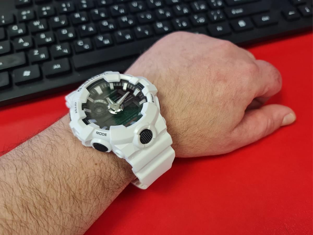 Японские мужские часы-хронографХронографФункция позволяет измерять отрезки времени с особой точностью: часы, минуты, секунды. Верным признаком хронографа является наличие на циферблате 3 дополнительных окошек-счётчиков. Casio G-Shock GA-700-7AER. Противоударный пластиковый корпус с карбоновыми волокнами более прочный и, в то же время, более легкий. Минеральное стеклоМинеральное стеклоМинеральное стекло представляет собой искусственно выращенный минерал кварца. Такое стекло отличается особой устойчивостью к повреждениям и царапинам. Уступает по некоторым качествам сапфировому стеклу. устойчивое к появлению царапин, обладающее высокой прозрачностью. Ударопрочный корпусУдаропрочный корпусМеханизм заключён в корпус, выполненный из современных материалов, устойчивых к ударам, механическим повреждениям и падению с высоты: инновационный пластик, карбон, нержавеющая сталь, титан. защищает механизм от ударов и вибрации. Многокомпонентный циферблат состоит из цифровых окошек указателей числа и дня недели, а также индикатора режима работы часов, который расположен в позиции 9 часов и выполнен в виде пропеллера. Светодиодная автоподсветка NeobriteПодсветка NeobriteИспользование светонакопительных составов на основе сульфида цинка или алюмината стронция, яркий свет можно наблюдать на протяжении 6-10 часов после «зарядки» часов около источника света. - при повороте часов в сторону лица подсветка дисплея осуществляется автоматически. Настраиваемое послесвечение 1,5 или 3сек. Мировое времяМировое время Полезное часовое усложнение, отображающее время в основных городах и известных областях по всему миру, оно связано с часовыми поясами, удобно для путешественников и бизнесменов. – 48 городов (29 часовых поясов). СекундомерСекундомерСекундоме́р — прибор, способный измерять интервалы времени с точностью до долей секунды. с точностью измерения 1/100 секунды и измерением до 23 часов 59 минут 59,99 cек. ТаймерТаймерОтсчитывает секунды в обратном направлении в заданном интервале времени. обратного отсчета (диапазон времени 24 часа), автоматический календарь, 12/24 отображение времени. 5 будильниковБудильникБуди́льник — часы, в заданный момент времени подающие звуковой, световой и/или в редких случаях другой сигнал., один с функцией Snooze, ежечасный сигнал. Класс водозащиты: 200 метров, позволит плавать, нырять и заниматься другими водными видами спорта. Ремешок из полимерного материала на стандартной застежке.