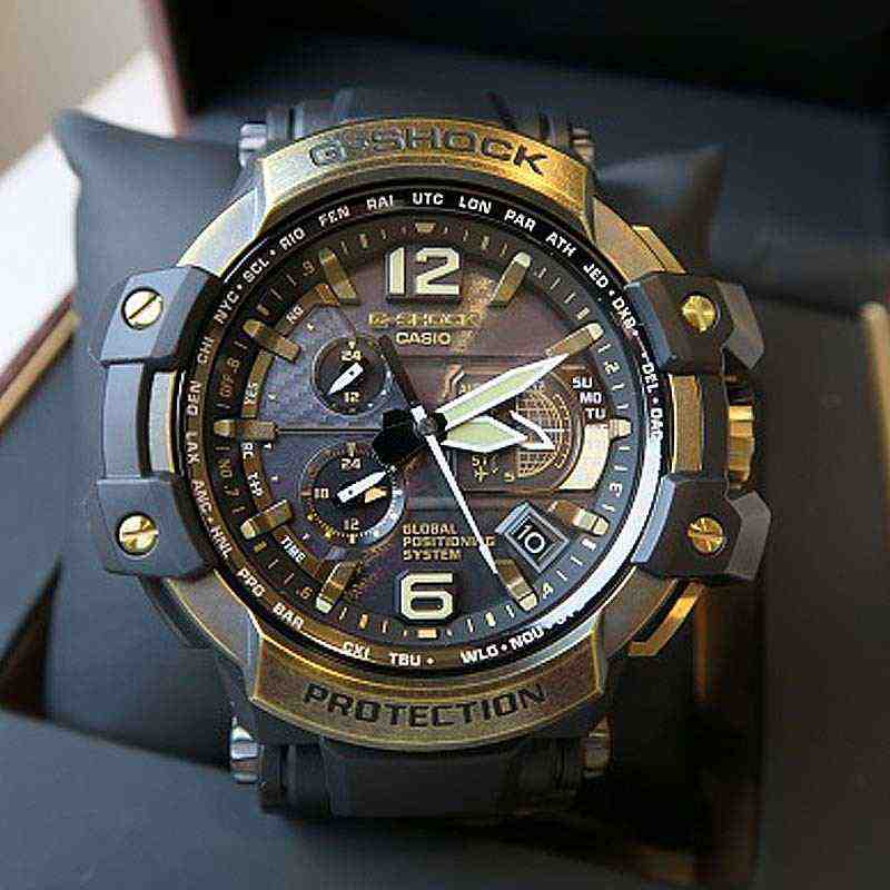 Флагманская лимитированная модель в черном корпусе с титановым безелем цвета винтажного золота из серии GRAVITYMASTER™ — это первые в мире часы с GPS- и радио-синхронизацией времени с атомными часами на разных континентах.